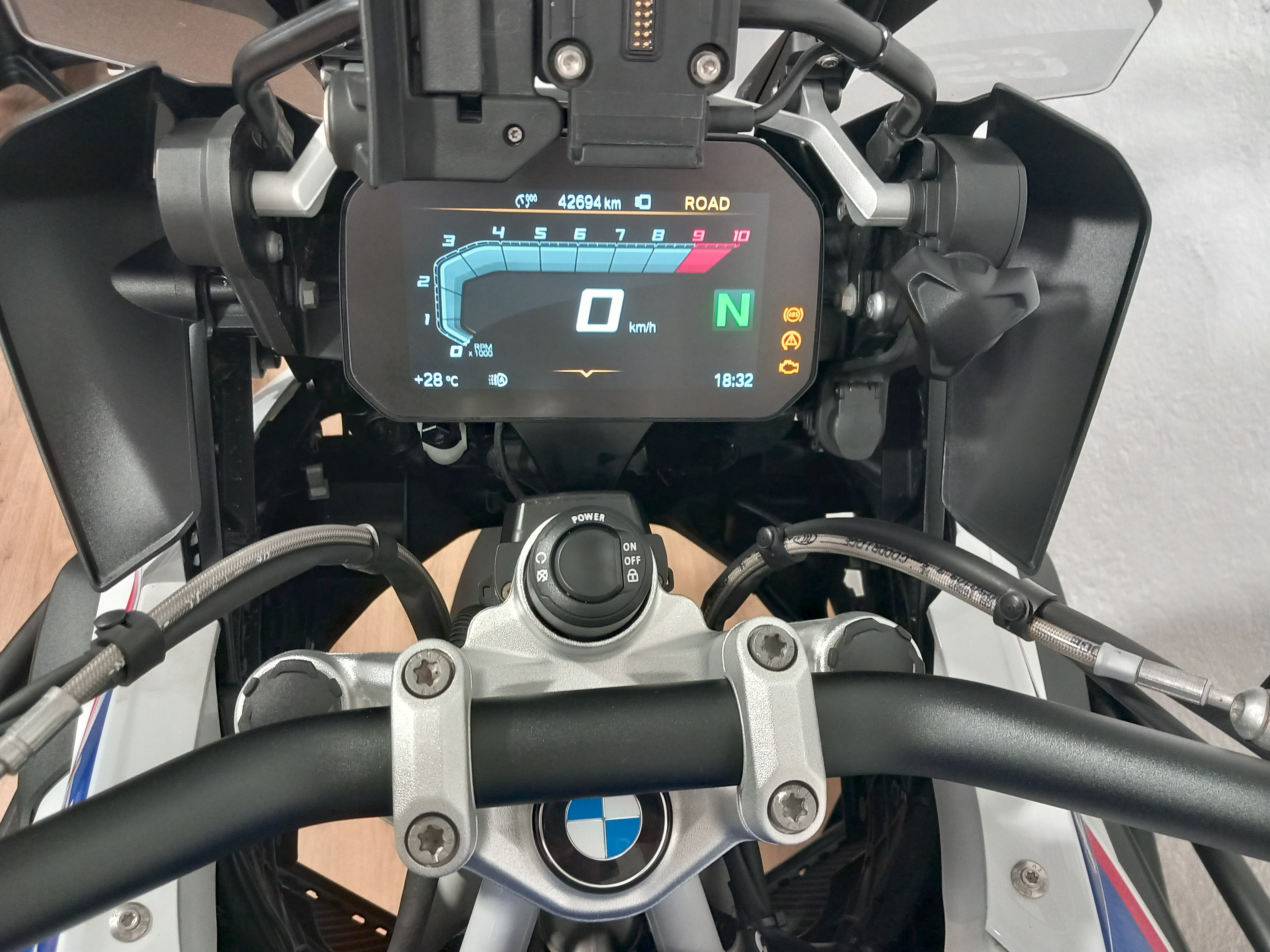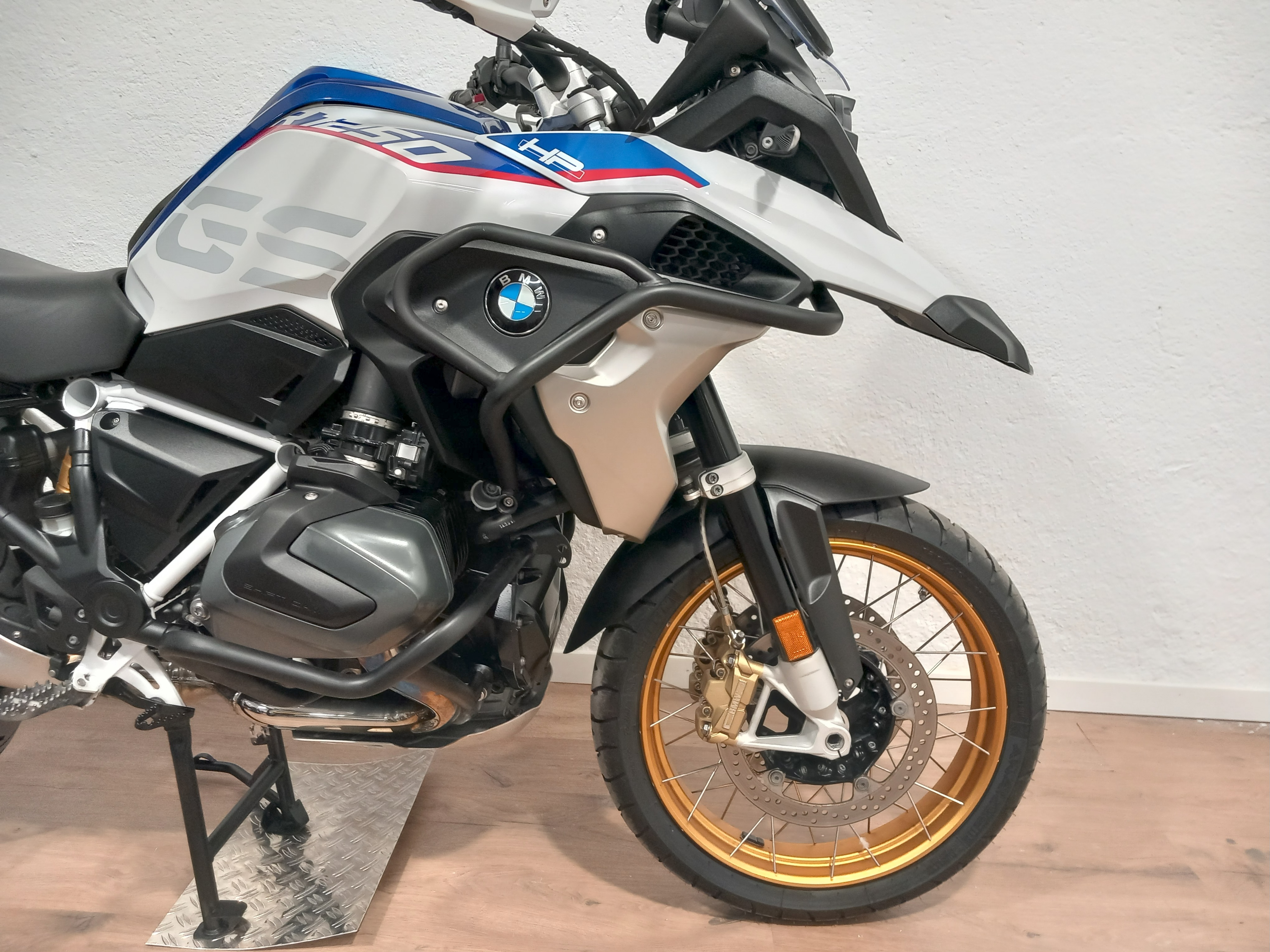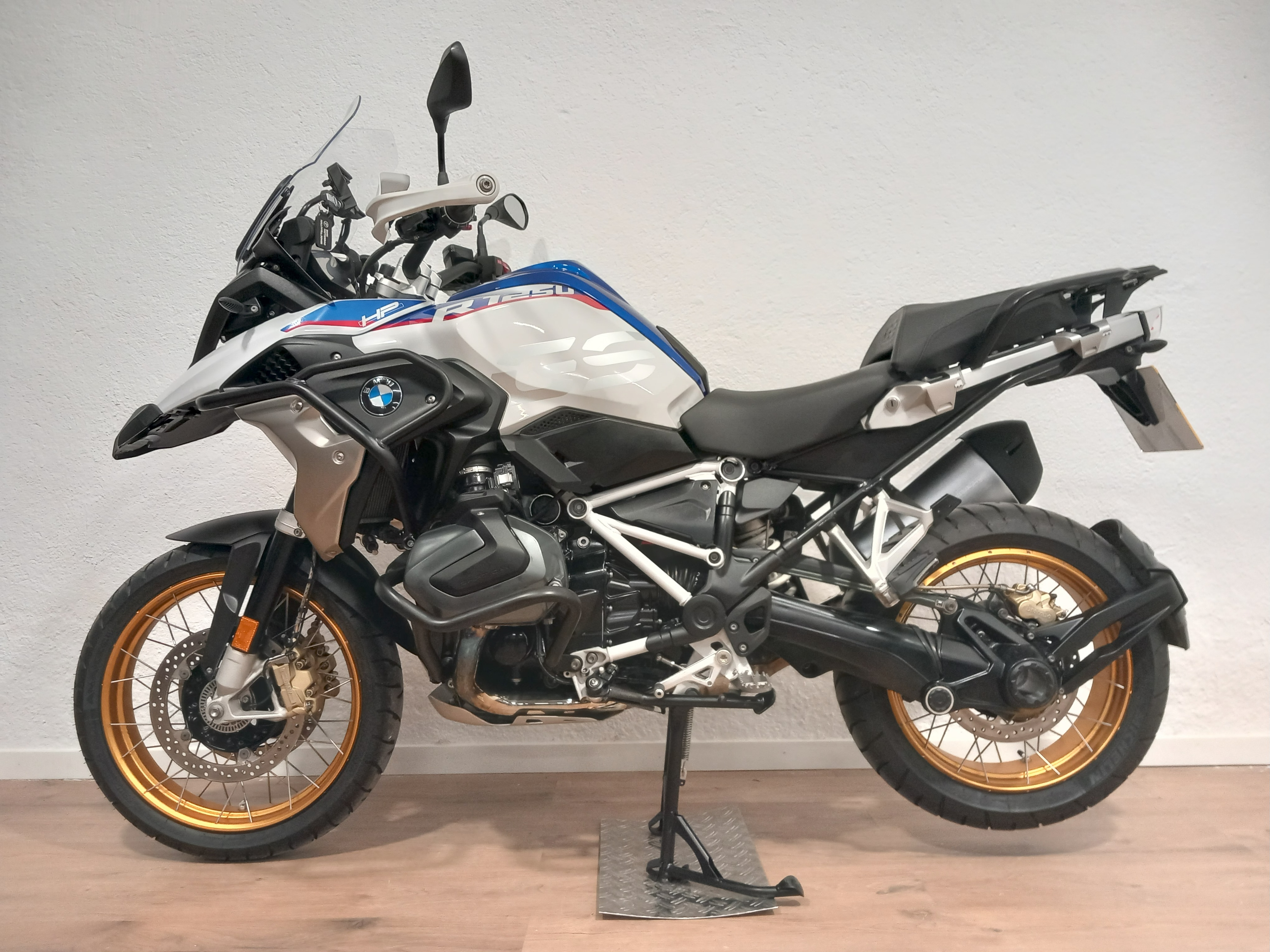 BMW R 1250 GS HP cuidada de forma impecable, absolutamente inmaculada. Procedente de BMW, con historial completo y recién revisada por servicio oficial BMW. Ambos neumáticos a estrenar. Full equipe con los 3 paquetes de su año y en consecuencia todos los extras: suspensión ESA, arranque comfort sin llave, RDC sensores de presión de neumáticos, cambio quick shifter pro, ABS pro, modos de conducción PRO, control de crucero, puños calefactables, basculante en negro, DTC, LEDS + diurno, pre-instalación de navegador, asistente de arranque en pendiente, protectores de motor BMW, llantas multi-radio, escape cromado, defensas de motor y carenado... El precio incluye documentación a nombre del comprador y garantía. ¡Pida cita previa para verificar su estado!