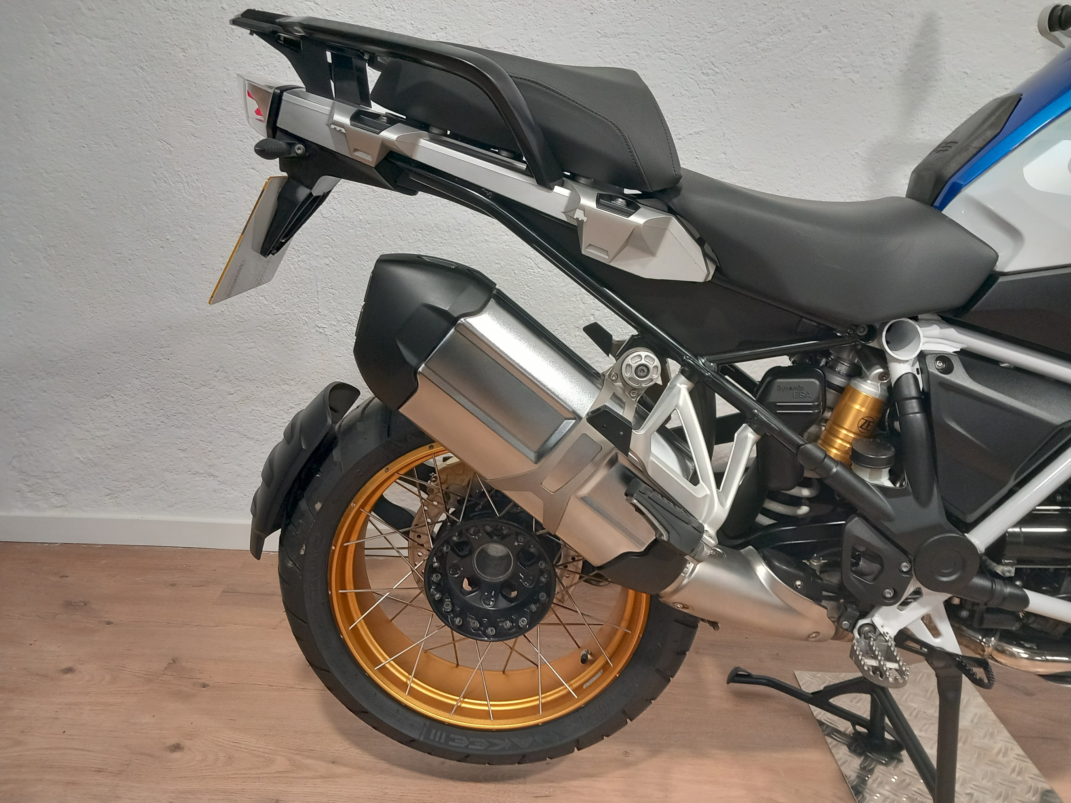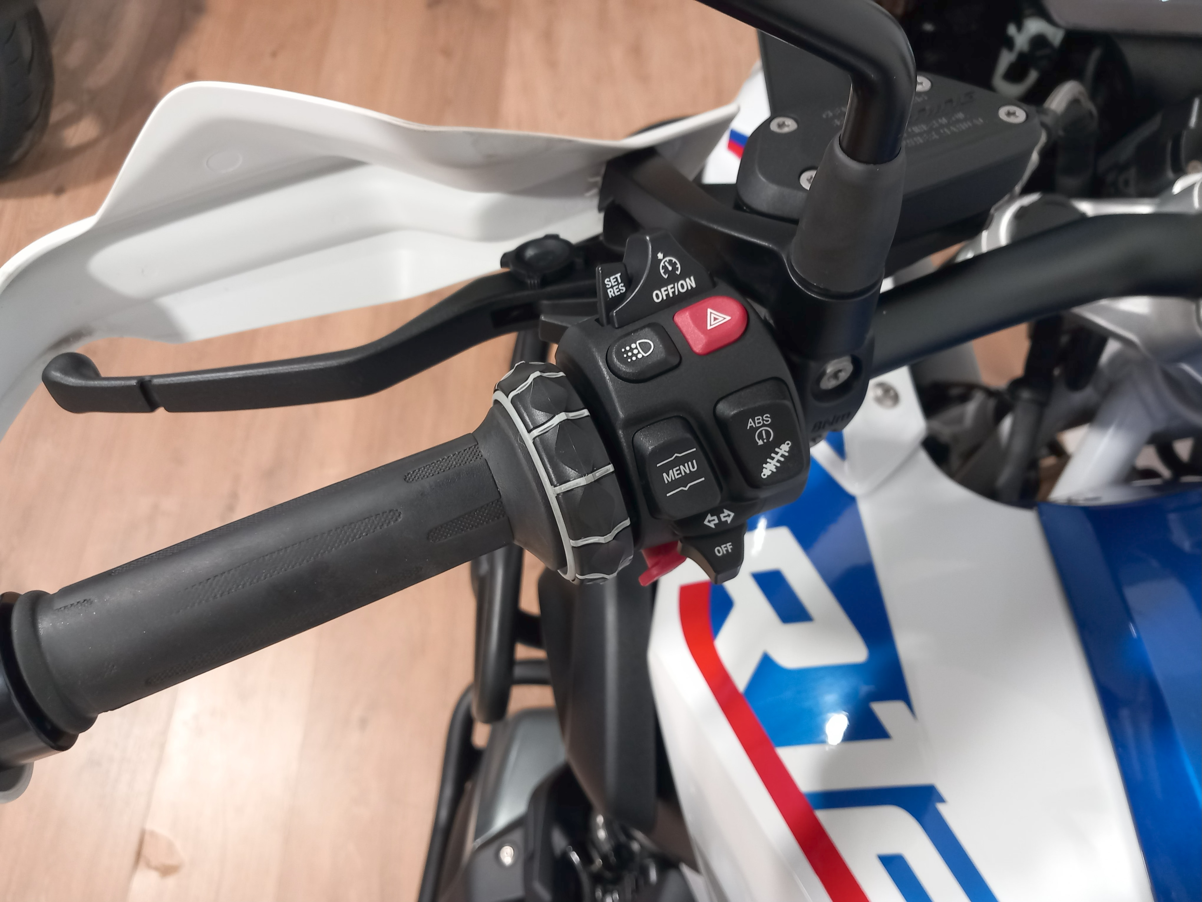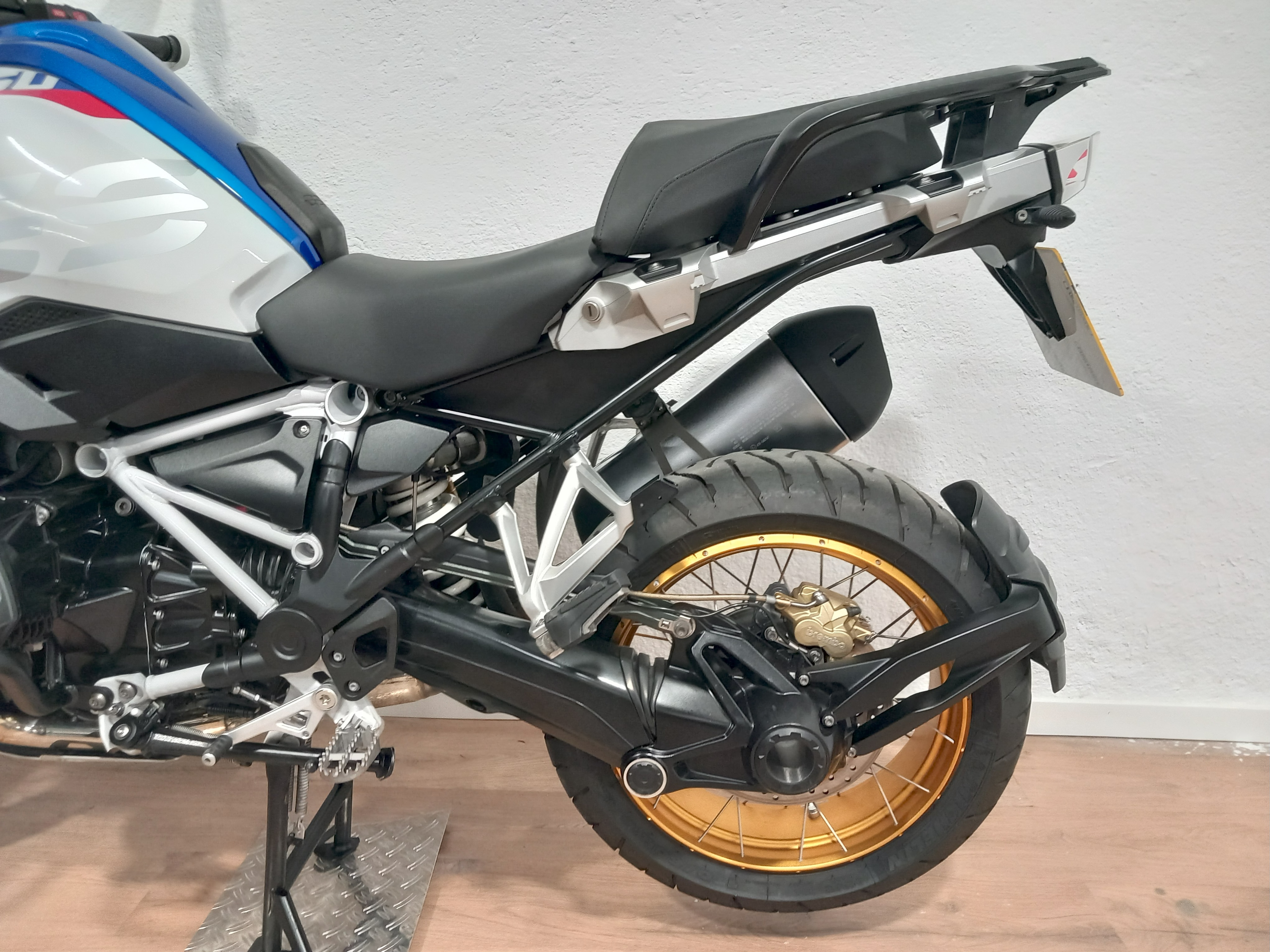 BMW R 1250 GS HP cuidada de forma impecable, absolutamente inmaculada. Procedente de BMW, con historial completo y recién revisada por servicio oficial BMW. Ambos neumáticos a estrenar. Full equipe con los 3 paquetes de su año y en consecuencia todos los extras: suspensión ESA, arranque comfort sin llave, RDC sensores de presión de neumáticos, cambio quick shifter pro, ABS pro, modos de conducción PRO, control de crucero, puños calefactables, basculante en negro, DTC, LEDS + diurno, pre-instalación de navegador, asistente de arranque en pendiente, protectores de motor BMW, llantas multi-radio, escape cromado, defensas de motor y carenado... El precio incluye documentación a nombre del comprador y garantía. ¡Pida cita previa para verificar su estado!