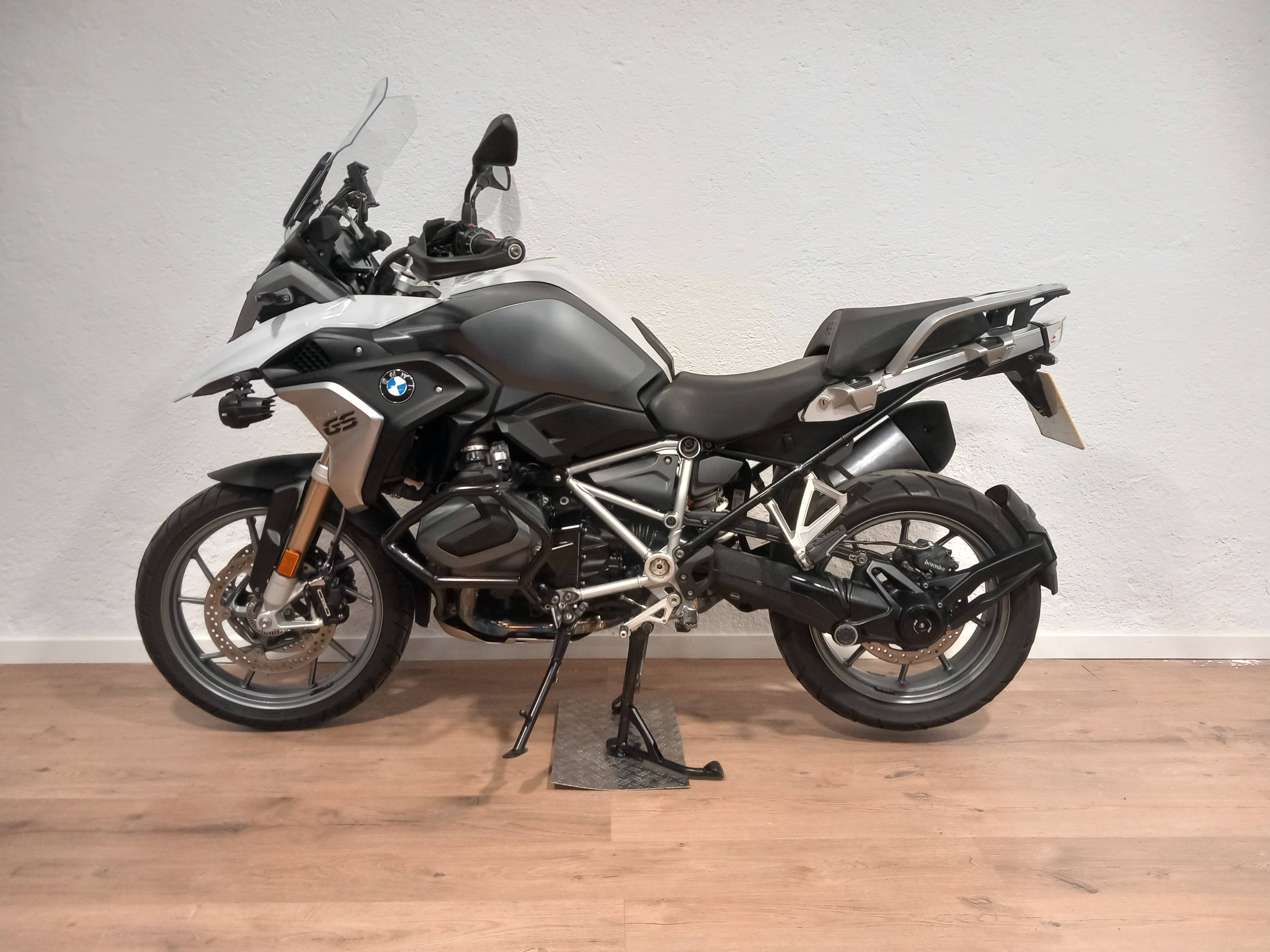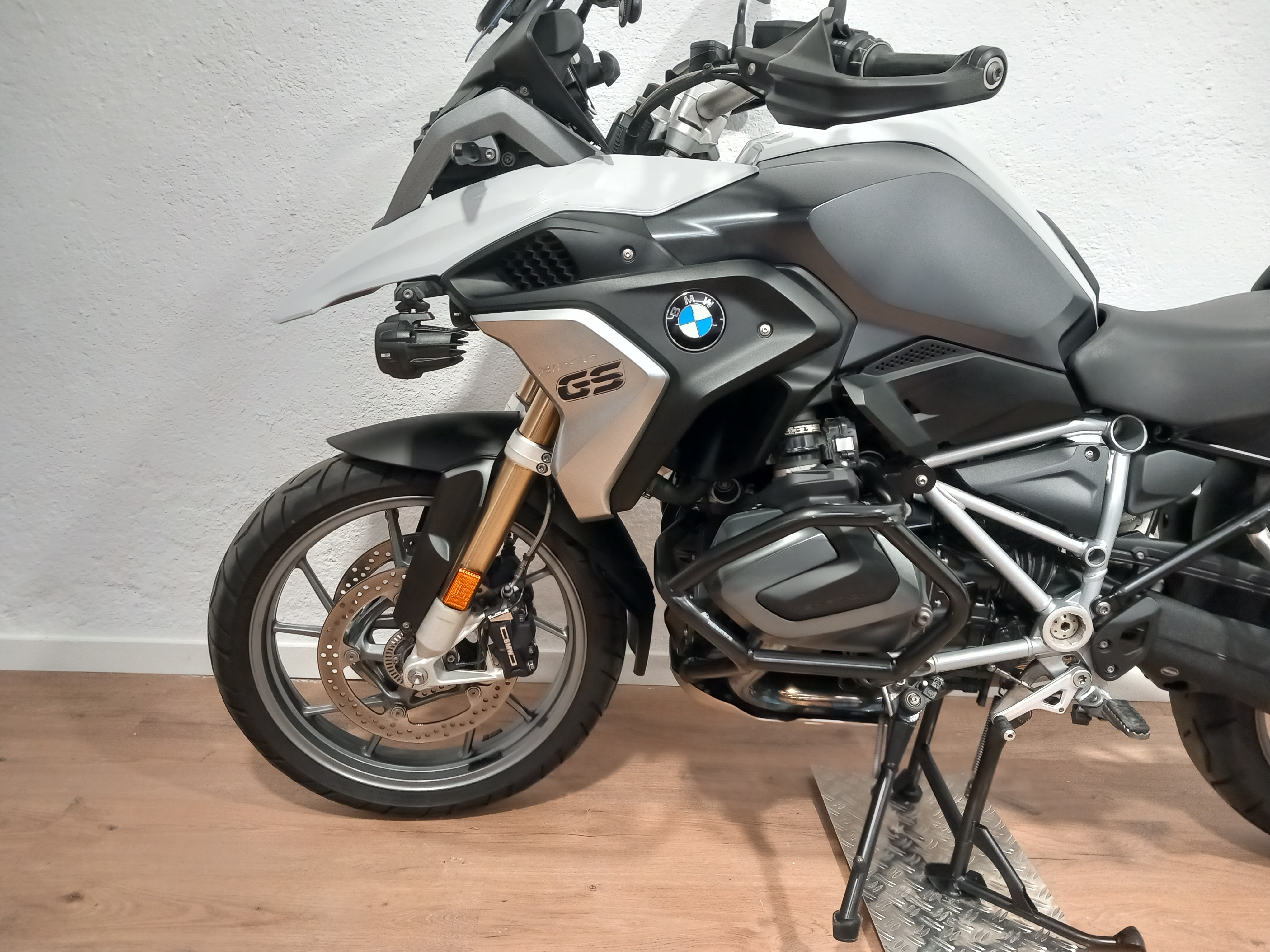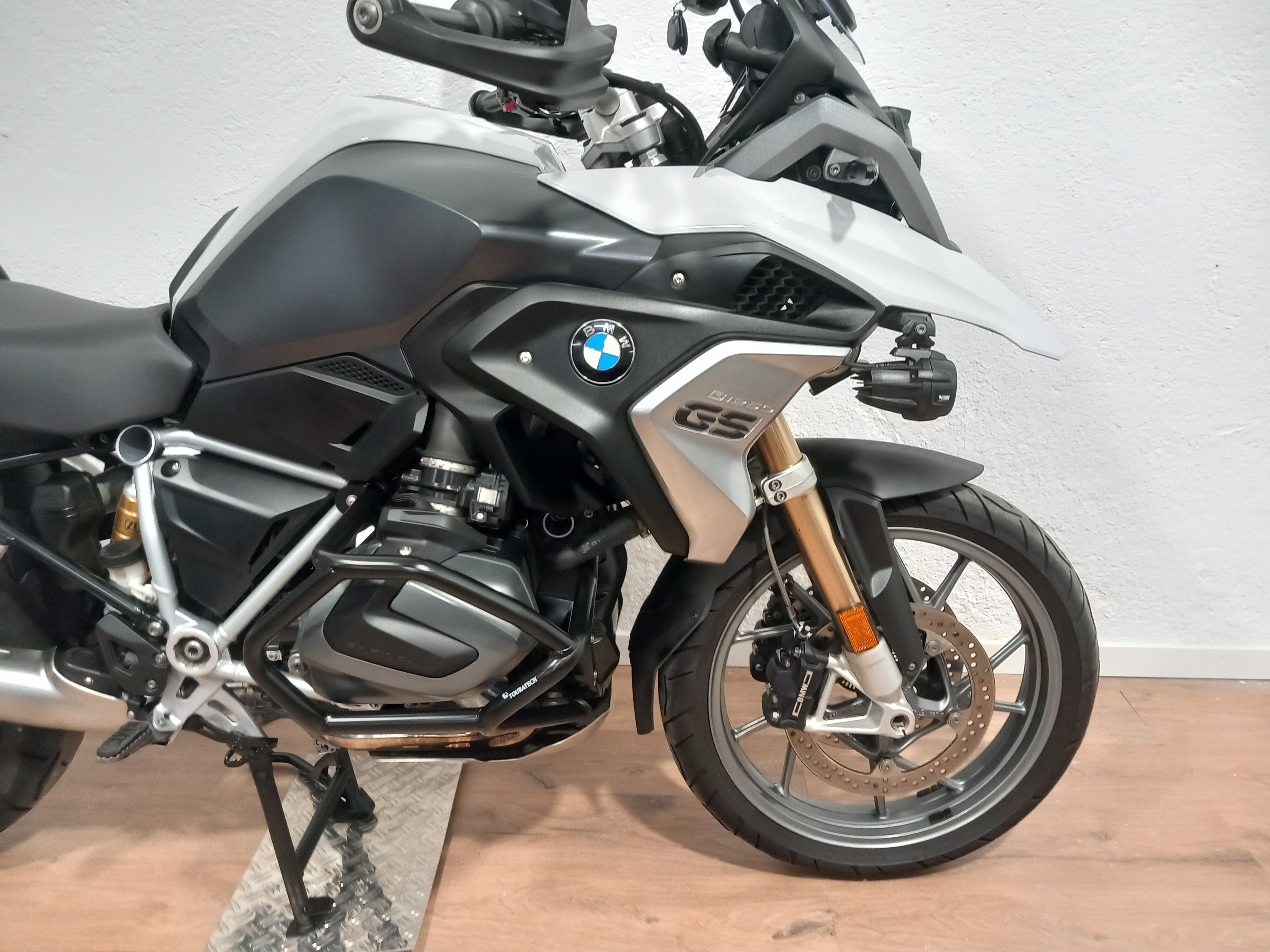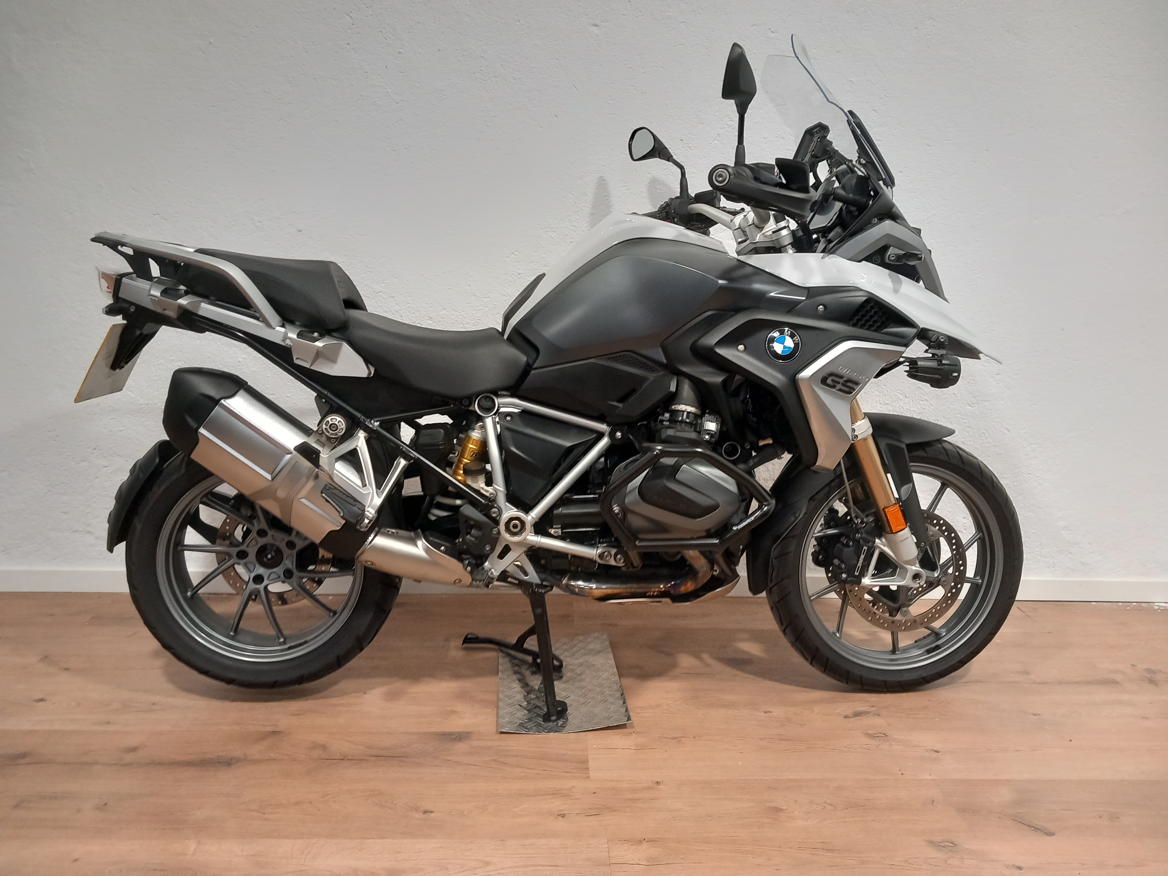 BMW R 1250 GS en perfecto estado, muy bien cuidada. Procedente de BMW, con todo el historial pasado y sellado, que se entregará recién revisada por servicio oficial BMW. Full equipe con los 4 paquetes de su año y en consecuencia todos los extras: suspensión ESA, arranque sin llave, RDC sensores de presión de neumáticos, cambio quick shifter pro, ABS pro, modos de conducción PRO, control de crucero, puños calefactables, basculante en negro, DTC, LEDS, pre-instalación de navegador, botón SOS tele-services, luces anti-niebla BMW homologadas, asistente de arranque en pendiente, escape cromado, defensas de motor Bóxer Touratech.... El precio incluye documentación a nombre del comprador y garantía. ¡Pida cita previa para verificar su estado!