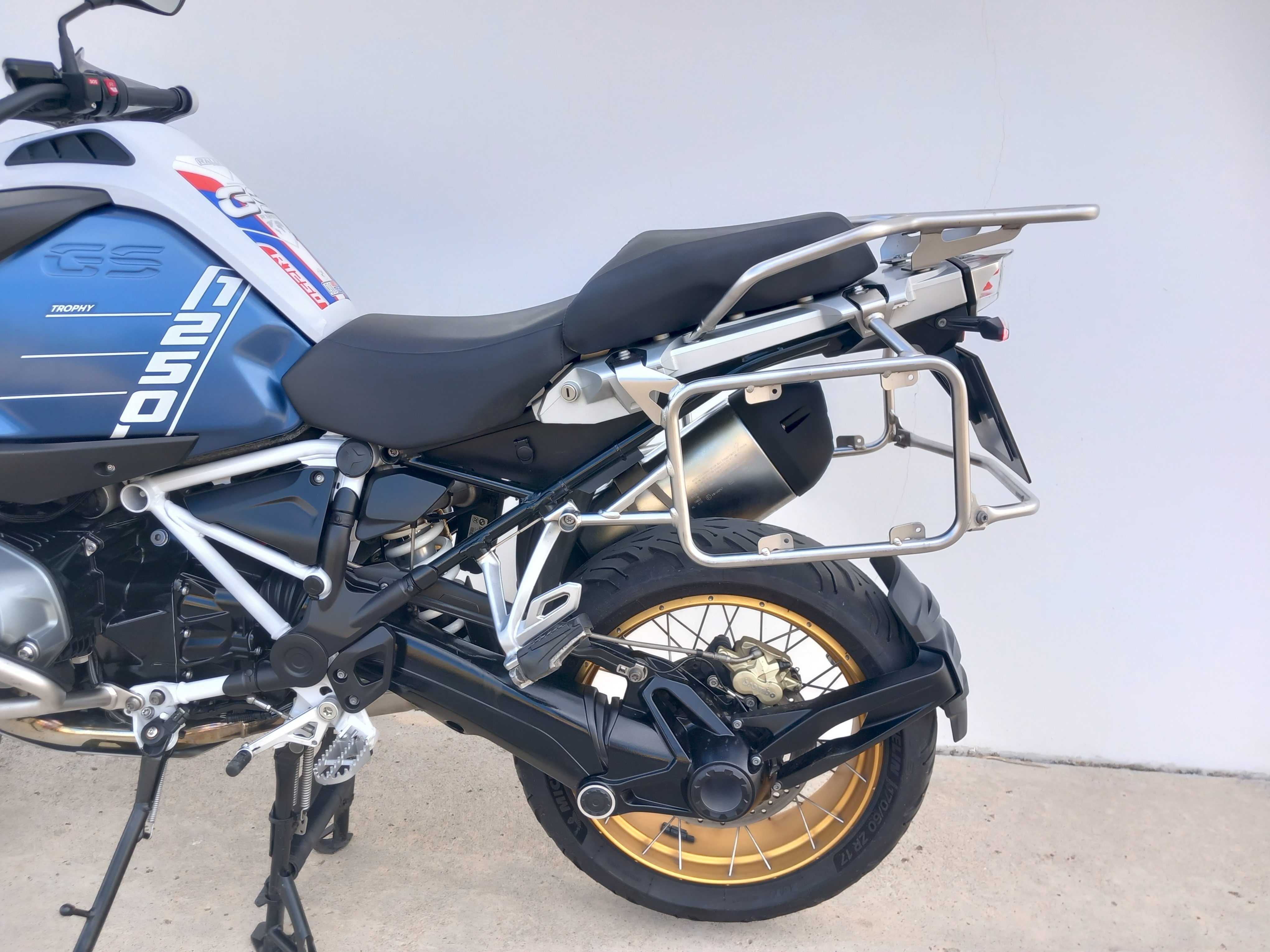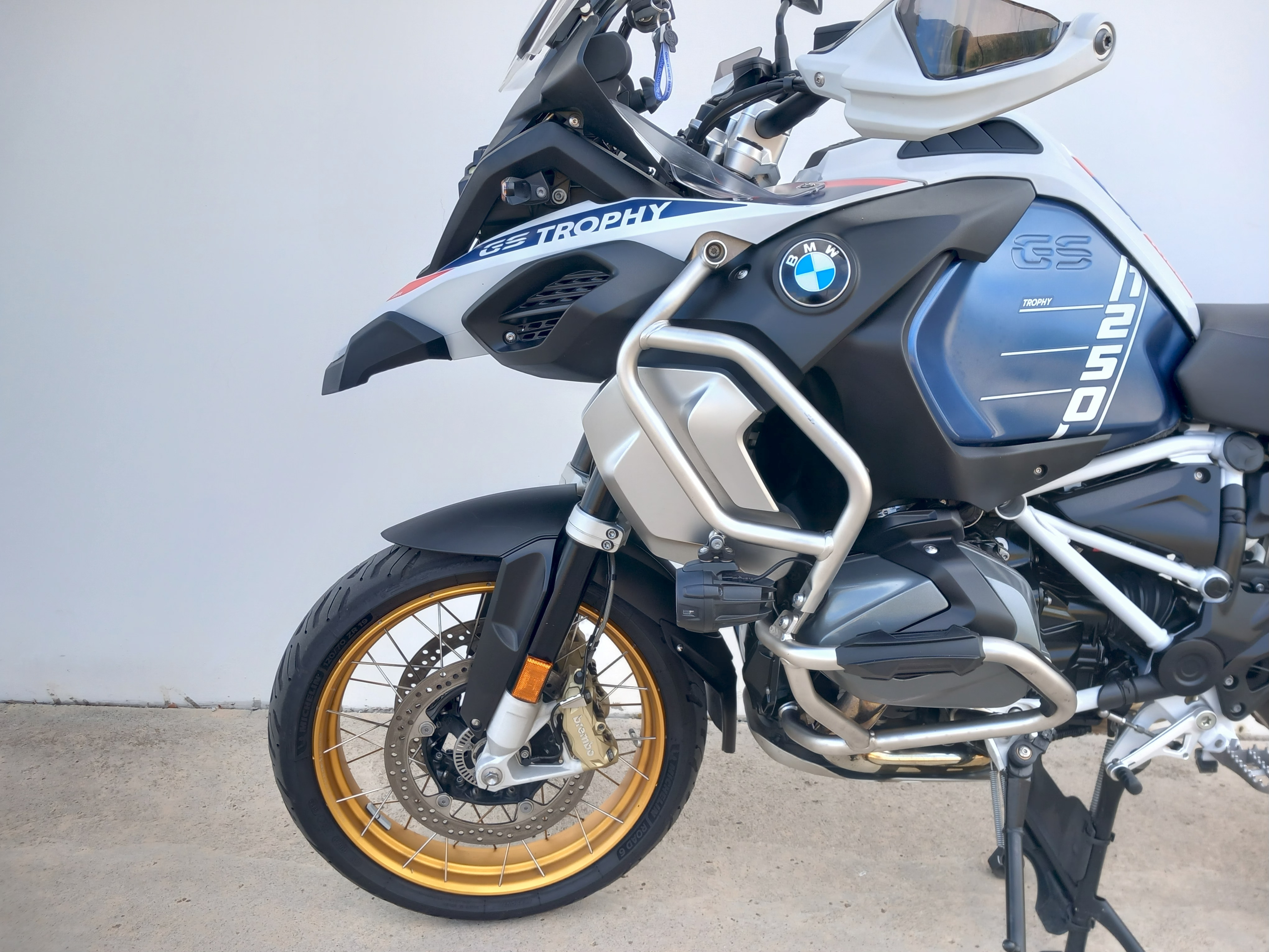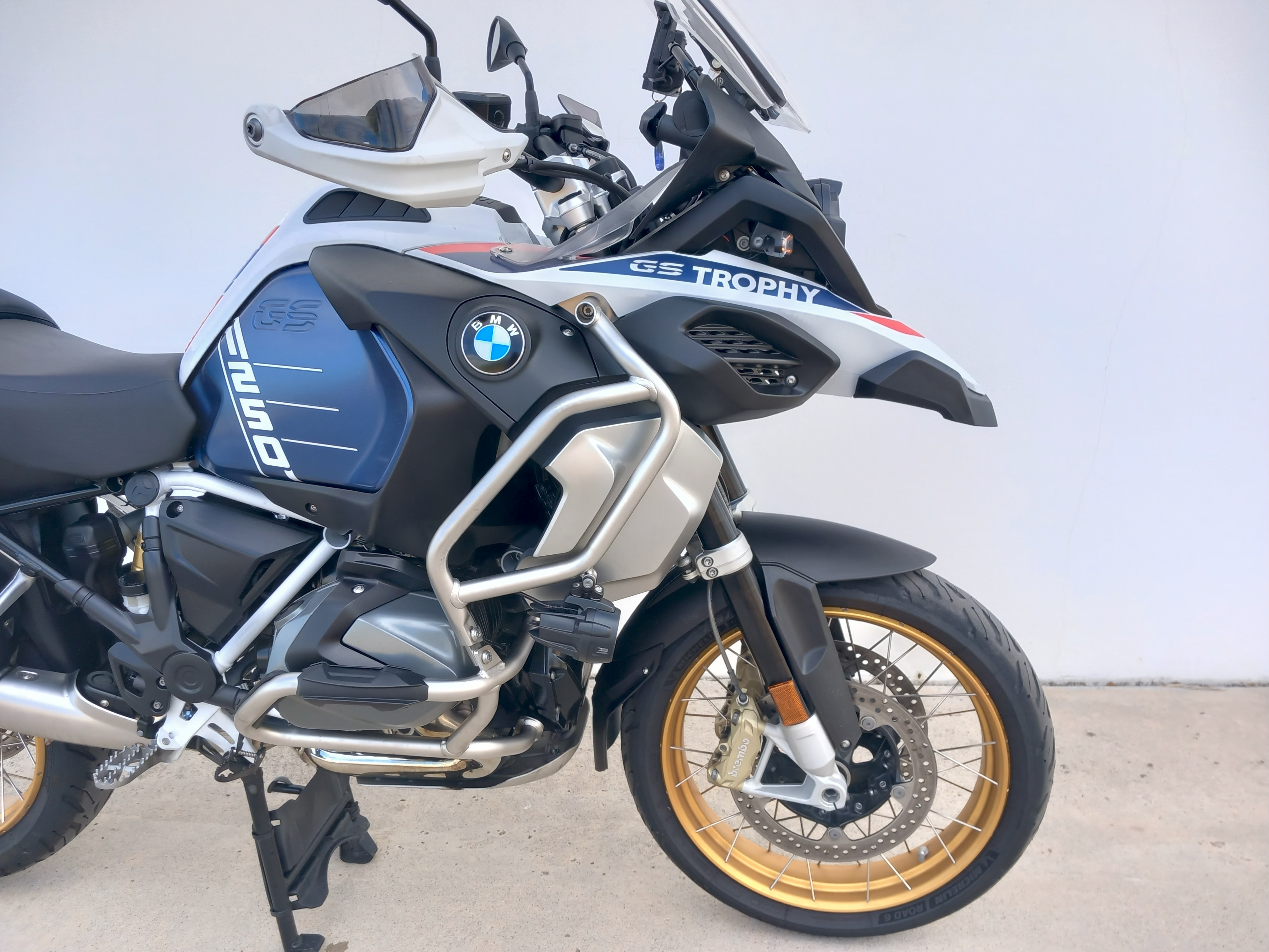 BMW R 1250 GS Adventure Trophy en estado de revista, re-restreno total. Procedente de BMW, con todo el historial pasado y sellado. Garantía oficial de fábrica y recientemente revisada en BMW. Full equipe con los 4 paquetes de su año y en consecuencia absolutamente todos los extras: Paquete iluminación con LED adaptativo e intermitentes multi-función, botón SOS tele-services, puños calefactables, suspensión ESA, arranque sin llave comfort, RDC sensores de presión de neumáticos, pantalla TFT, cambio quick shifter pro, ABS pro, modos de conducción PRO, control de crucero, pre-instalación de navegador, asistente de arranque en pendiente, basculante en negro, DTC, LEDS... Al ser Adventure, llantas multi-radio, defensas de motor, carenado y traseras, luces anti-niebla BMW homologadas, escape cromado...El precio incluye documentación a nombre del comprador y garantía. ¡Pida cita previa para verificar su estado!