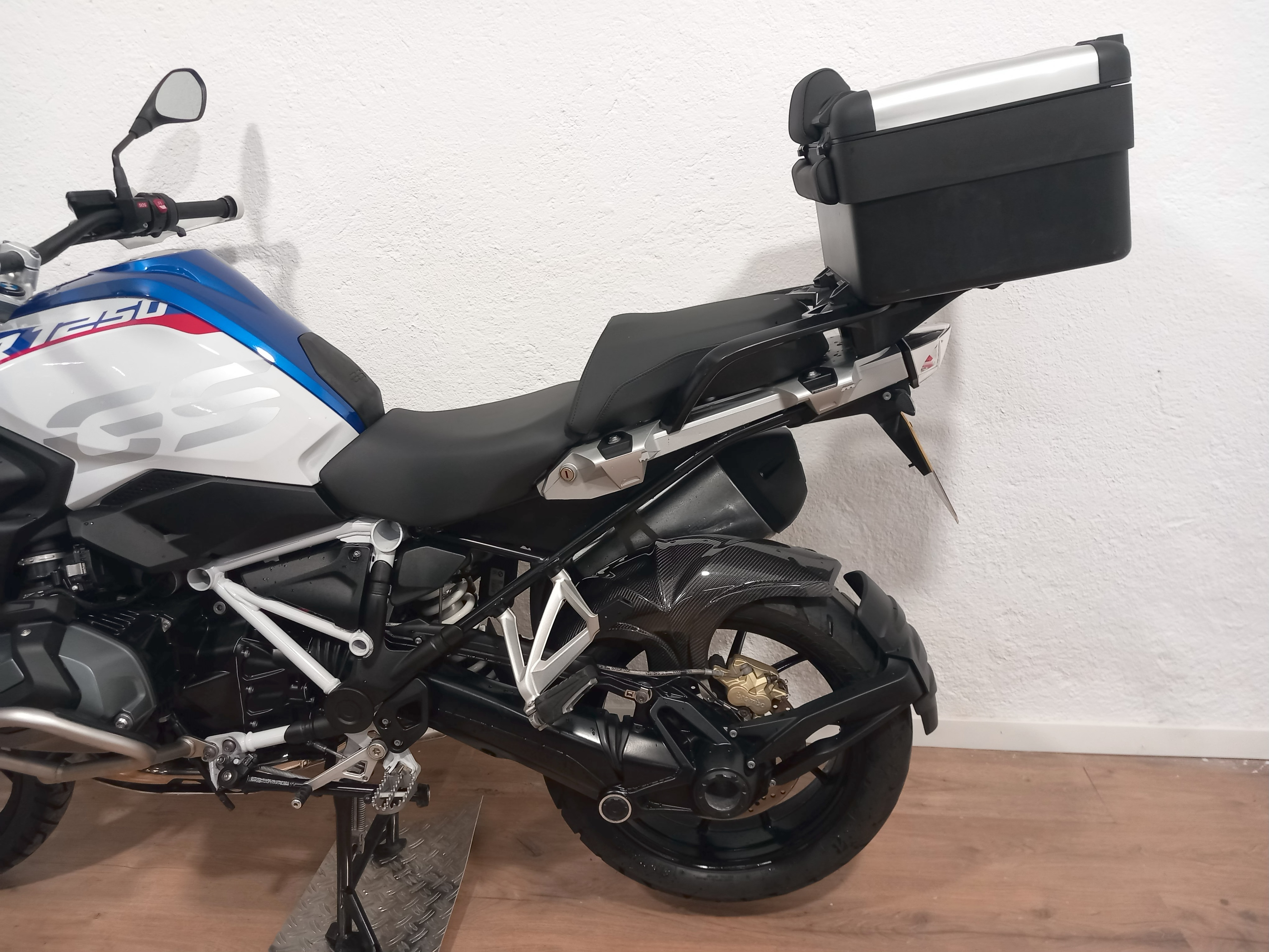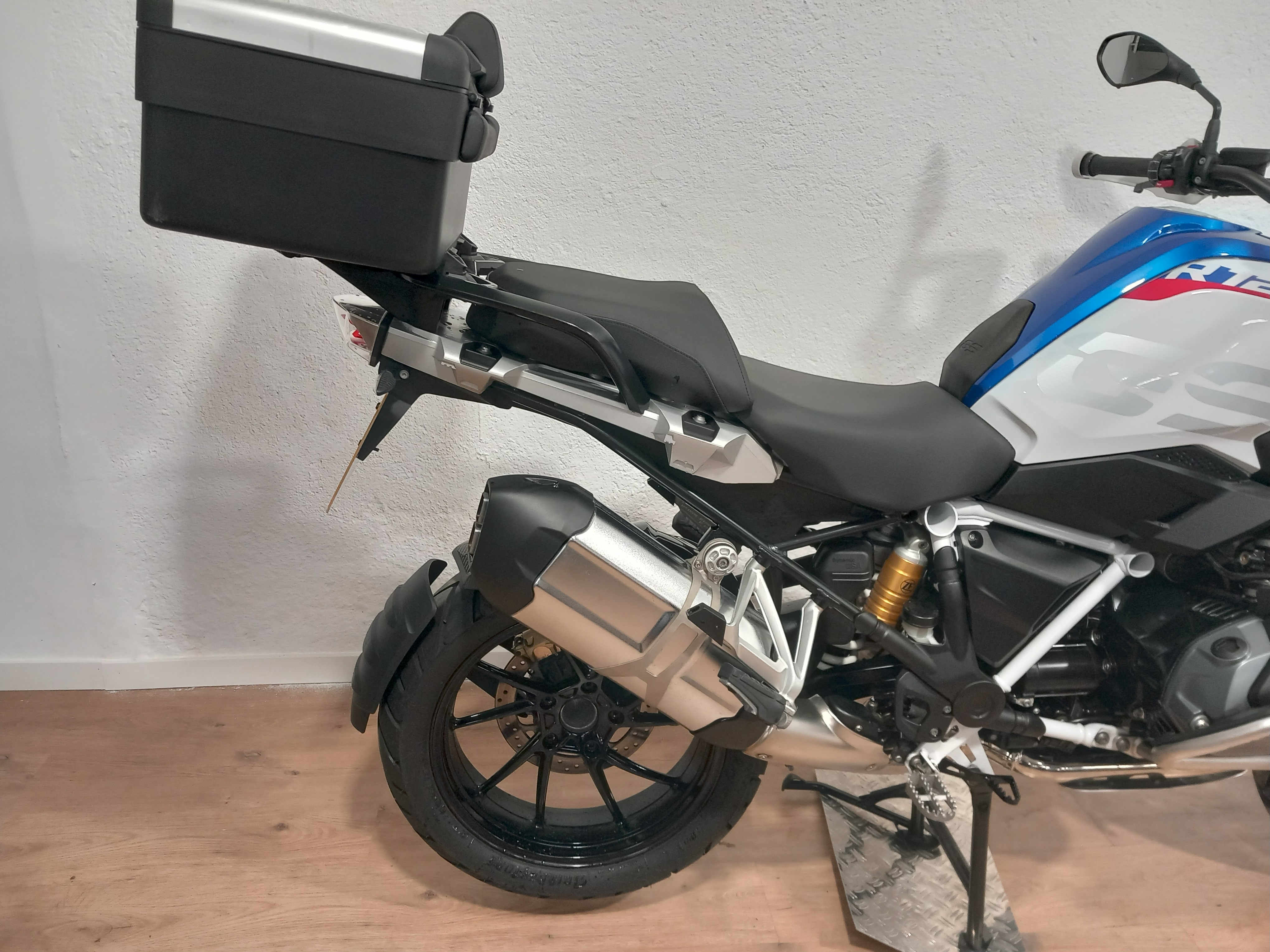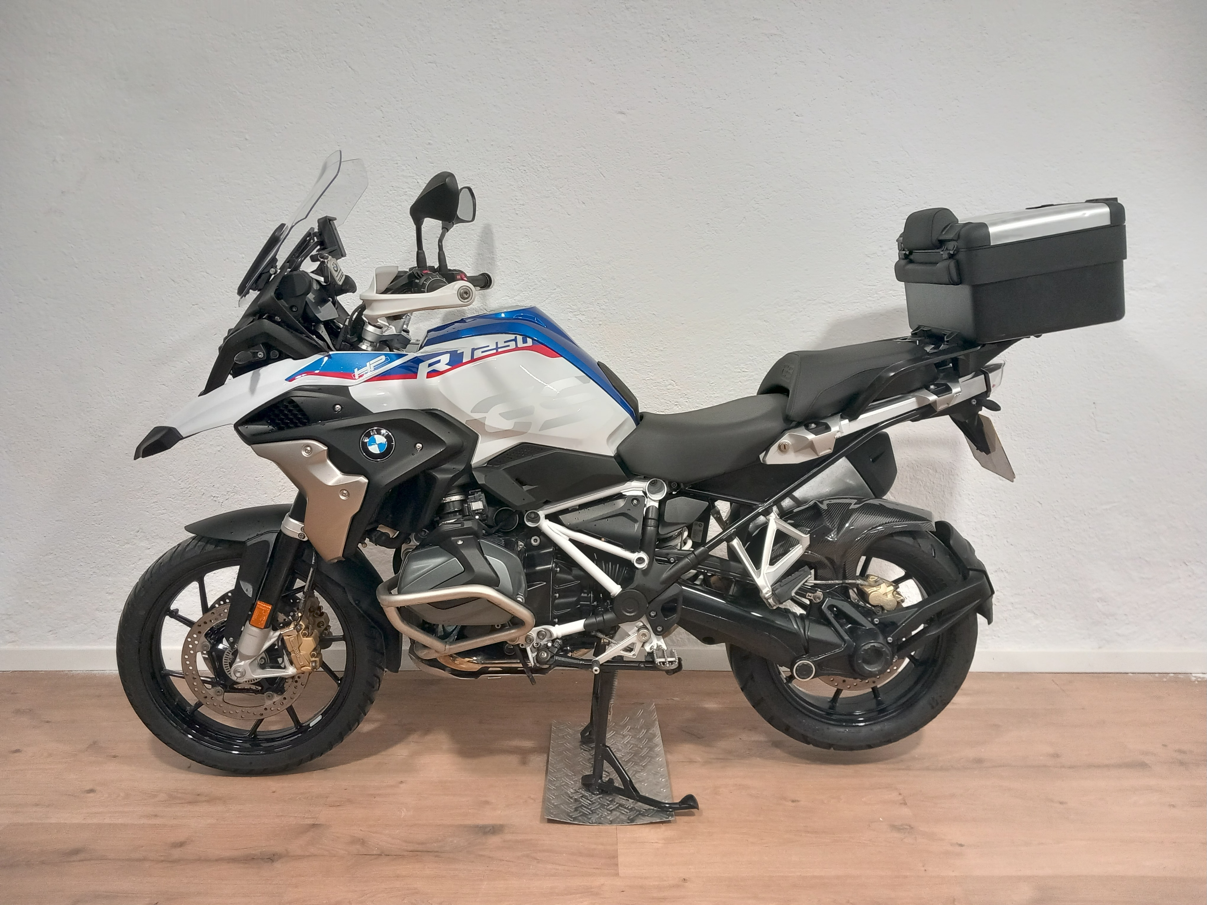 BMW R 1250 GS HP absolutamente impecable, espectacularmente cuidada. Procedente de BMW, con todo el historial pasado y sellado que se entregará recién revisada por servicio oficial BMW Madrid. Full equipe con los 3 paquetes de su año y en consecuencia absolutamente todos los extras: Botón SOS tele-services, puños calefactables, suspensión ESA, arranque sin llave comfort, RDC sensores de presión de neumáticos, pantalla TFT, cambio quick shifter pro, ABS pro, modos de conducción PRO, control de crucero, pre-instalación de navegador, asistente de arranque en pendiente, escape cromado, basculante en negro, DTC, LEDS, defensas BMW (con alguna rayadita) Y top case BMW Vario... El precio incluye documentación a nombre del comprador y garantía. ¡Pida cita previa para verificar su estado!