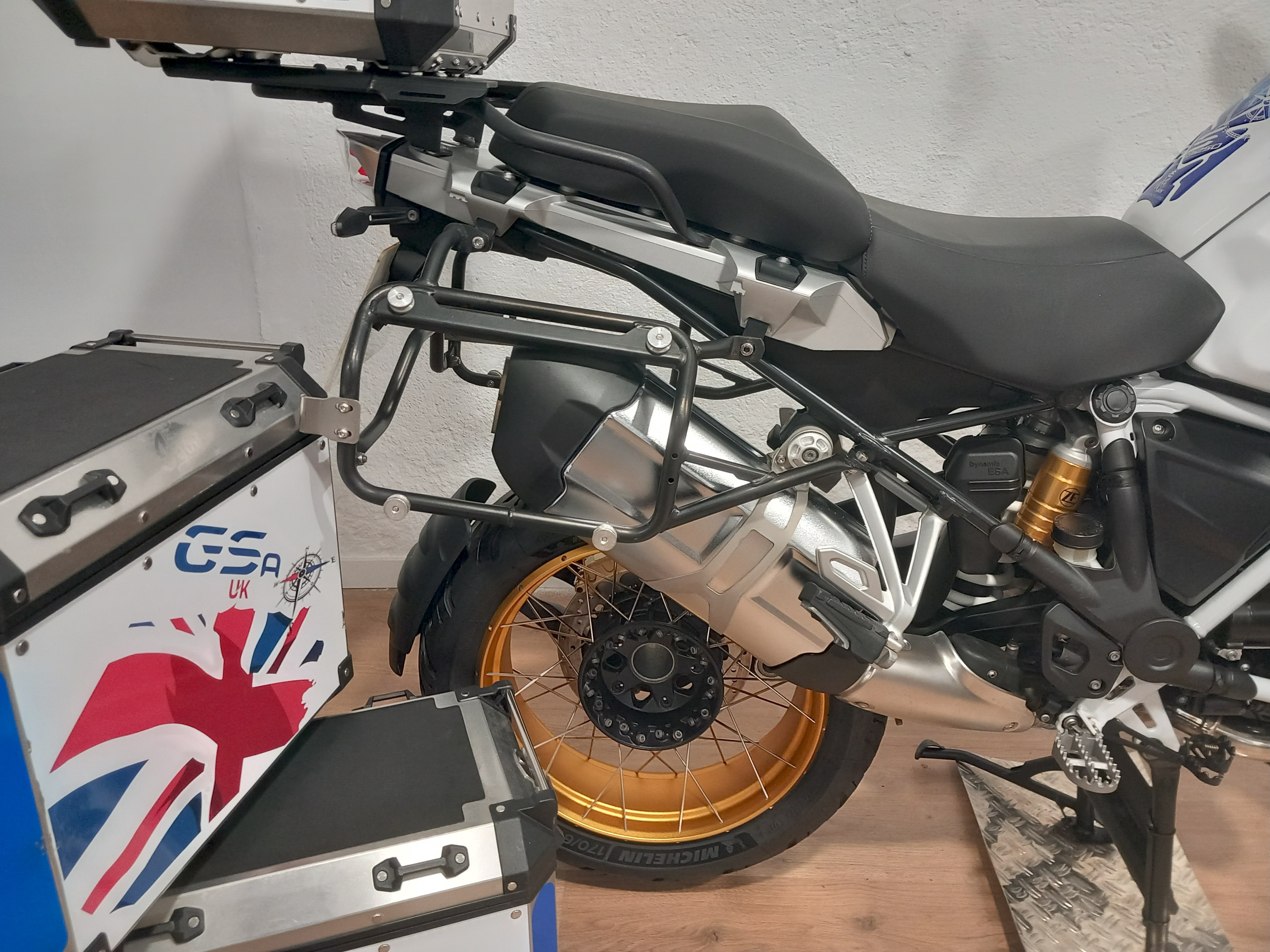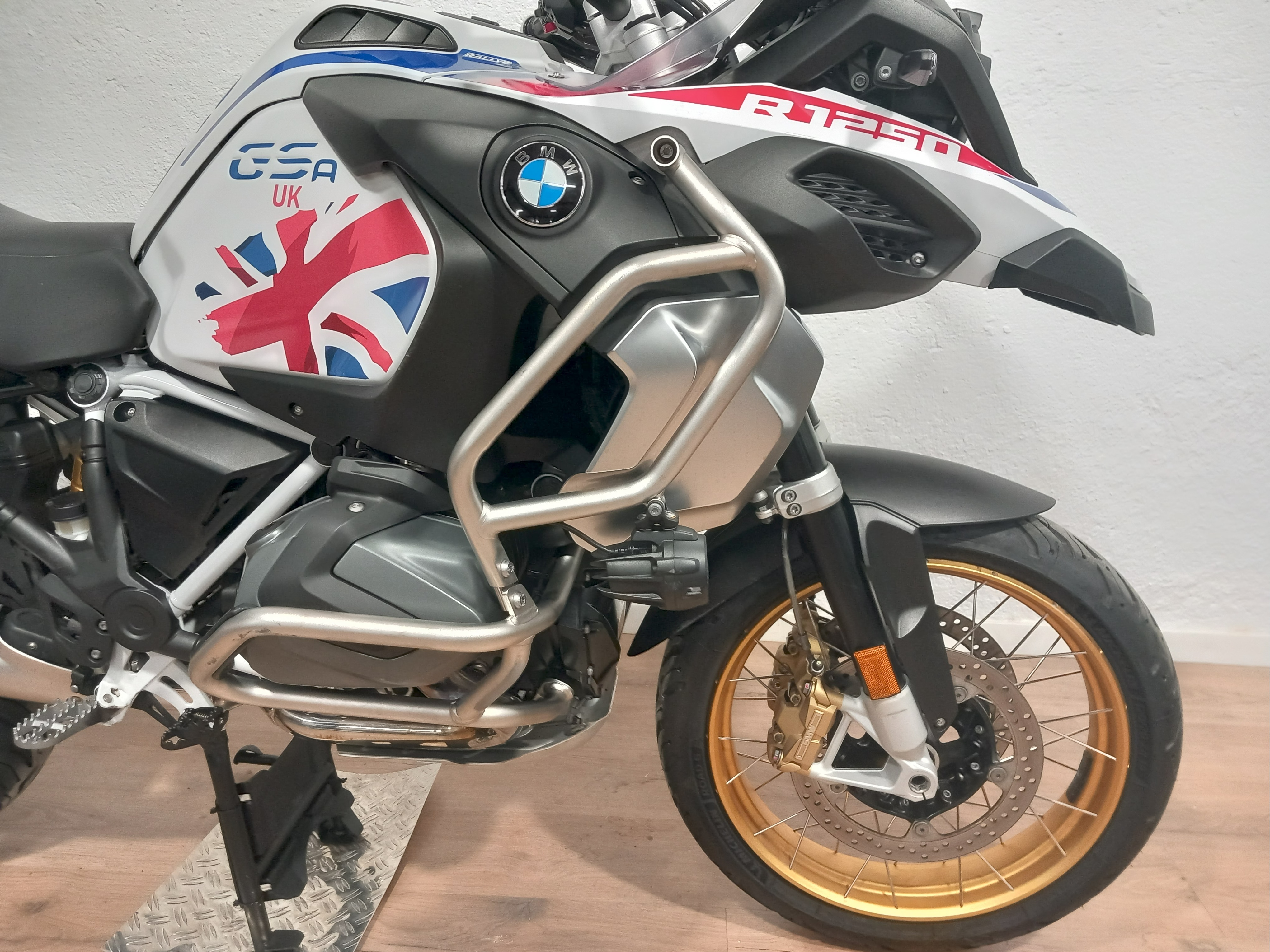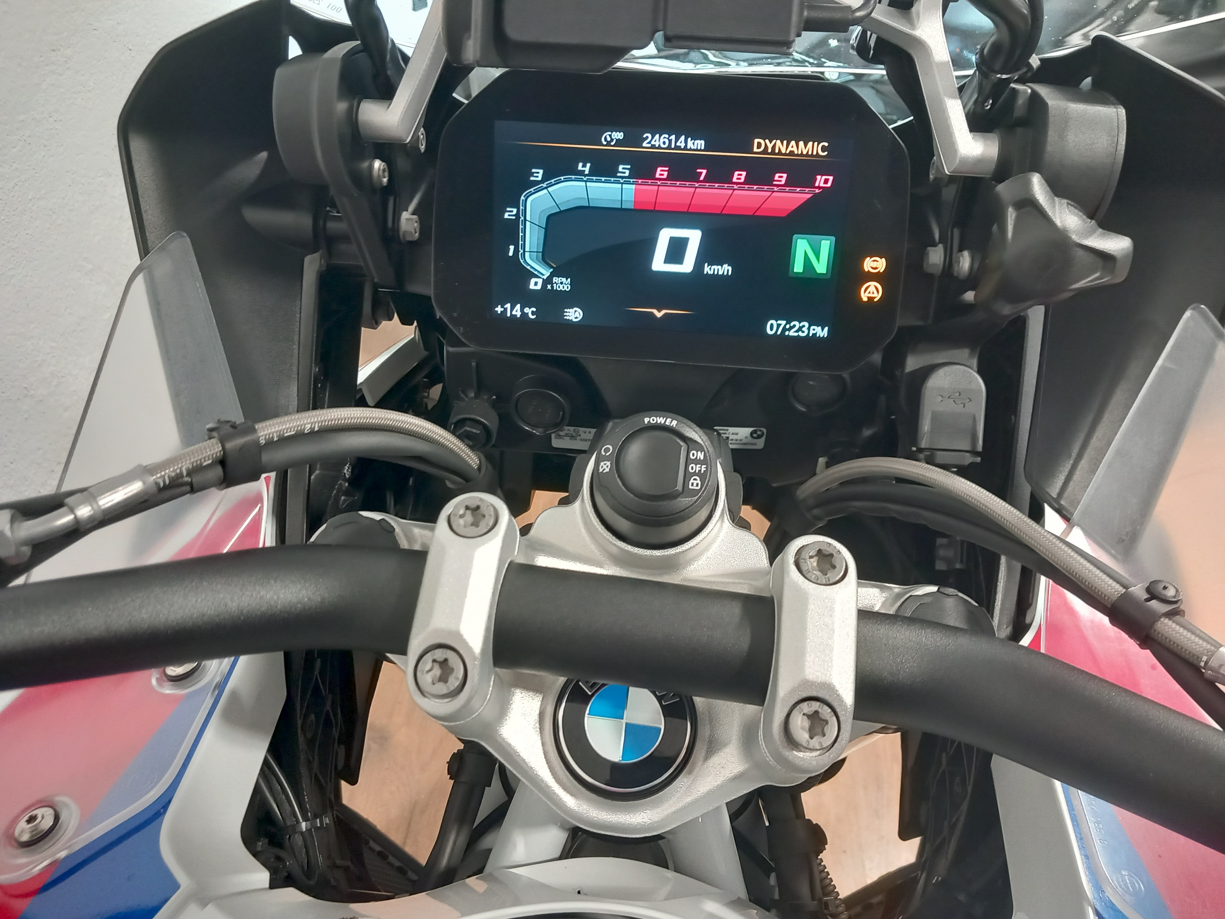 BMW R 1250 GS Adventure Rallye en increíble estado. Espectacular. Procedente de BMW cómo puede verse en las fotos, con todo el historial pasado y sellado. Recién revisada por BMW. Full equipe con los 4 paquetes de su año y en consecuencia absolutamente todos los extras: Paquete iluminación con LED adaptativo e intermitentes multi-función, botón SOS tele-services, puños calefactables, asientos calefactados independientes, suspensión ESA, arranque sin llave comfort, RDC sensores de presión de neumáticos, pantalla TFT, cambio quick shifter pro, ABS pro, modos de conducción PRO, control de crucero, pre-instalación de navegador, asistente de arranque en pendiente, basculante en negro, DTC, LEDS... Al ser Adventure, llantas multi-radio, defensas de motor, carenado y traseras, luces anti-niebla BMW homologadas, escape cromado... Además, lleva 3 maletas GIVI en aluminio de gran tamaño, incluído el top case de 2 cascos integrales. El precio incluye documentación a nombre del comprador y garantía. ¡Pida cita previa para verificar su estado!
