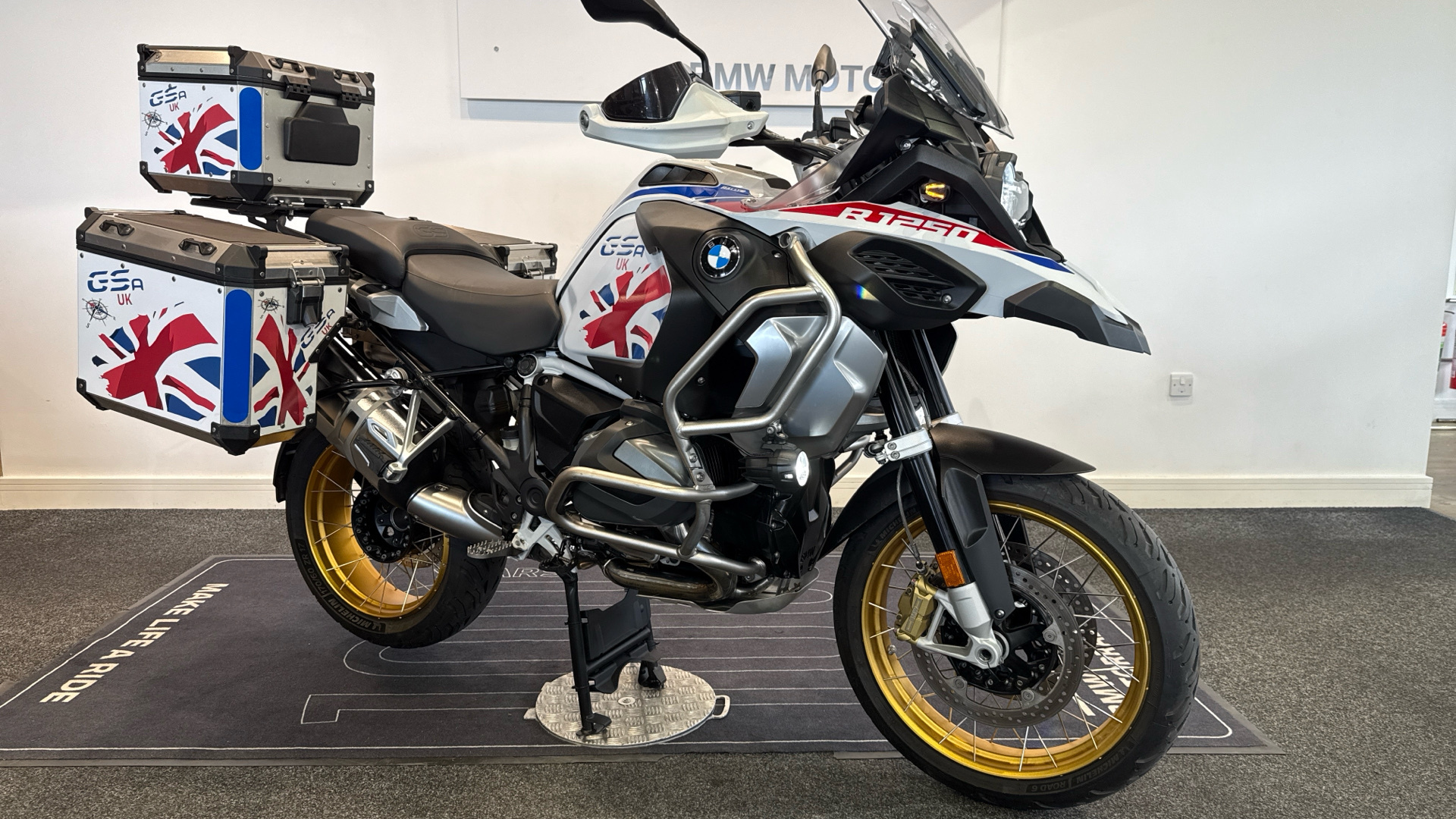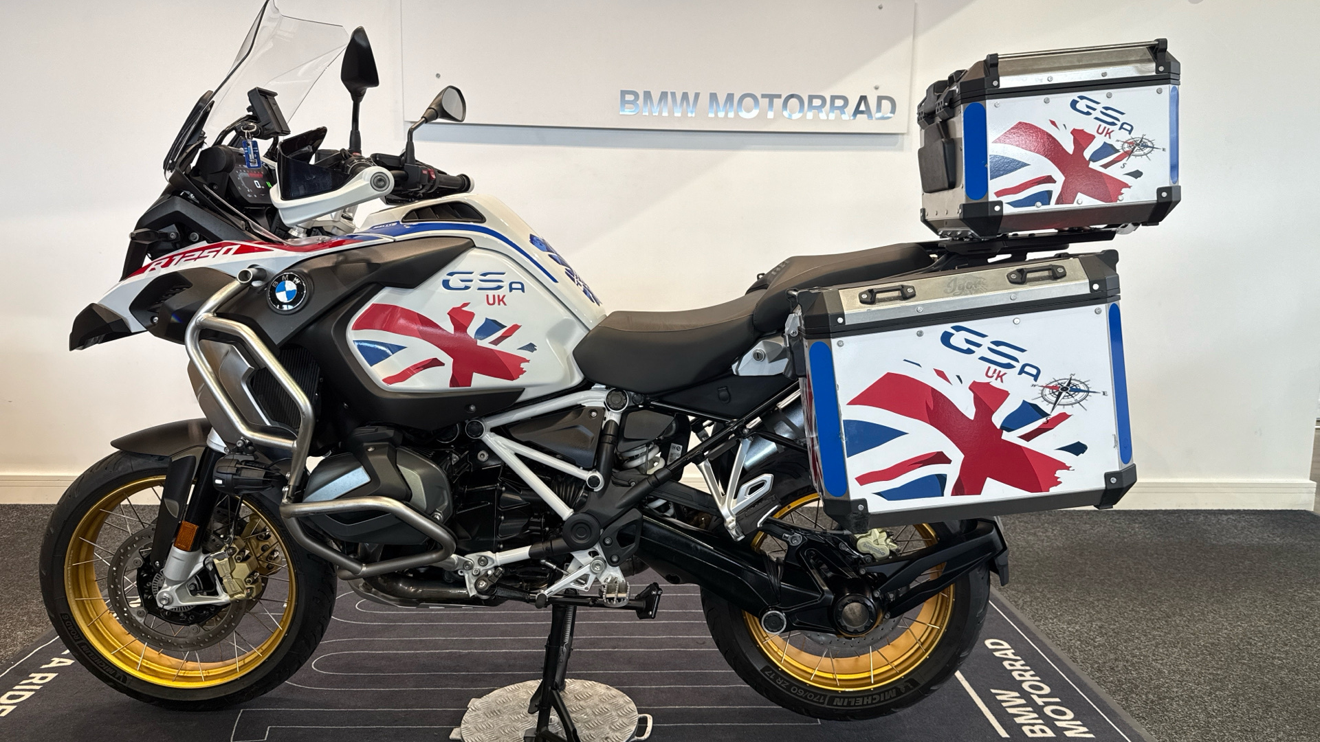 ¡Próxima llegada a exposición a principios de Noviembre! BMW R 1250 GS Adventure Rallye en increíble estado. Espectacular. Procedente de BMW cómo puede verse en las fotos, con todo el historial pasado y sellado. Recién revisada por BMW. Full equipe con los 4 paquetes de su año y en consecuencia absolutamente todos los extras: Paquete iluminación con LED adaptativo e intermitentes multi-función, botón SOS tele-services, puños calefactables, asientos calefactados independientes, suspensión ESA, arranque sin llave comfort, RDC sensores de presión de neumáticos, pantalla TFT, cambio quick shifter pro, ABS pro, modos de conducción PRO, control de crucero, pre-instalación de navegador, asistente de arranque en pendiente, basculante en negro, DTC, LEDS... Al ser Adventure, llantas multi-radio, defensas de motor, carenado y traseras, luces anti-niebla BMW homologadas, escape cromado... Además, lleva 3 maletas GIVI en aluminio de gran tamaño, incluído el top case de 2 cascos integrales. El precio incluye documentación a nombre del comprador y garantía. ¡Pida cita previa para verificar su estado!