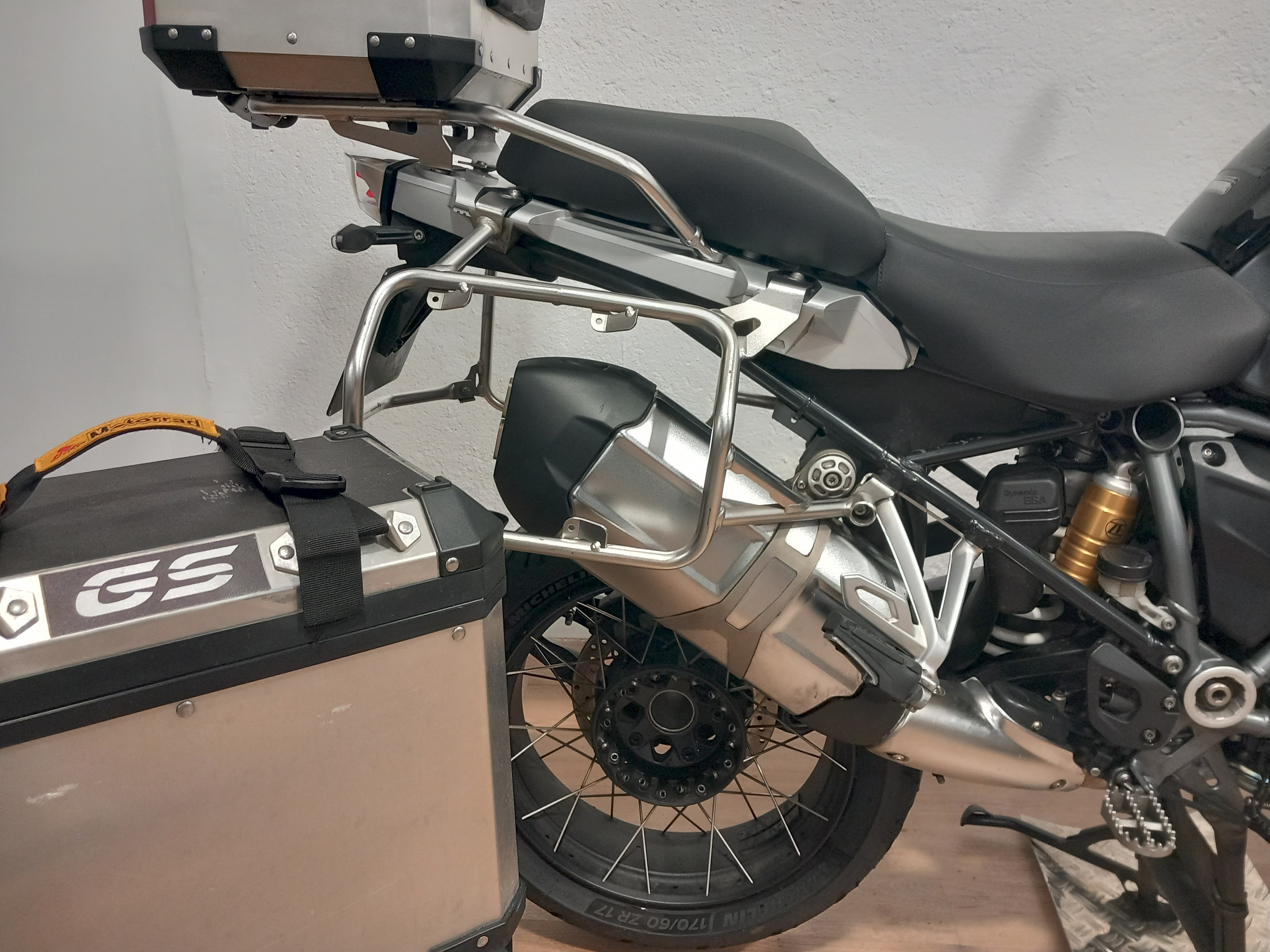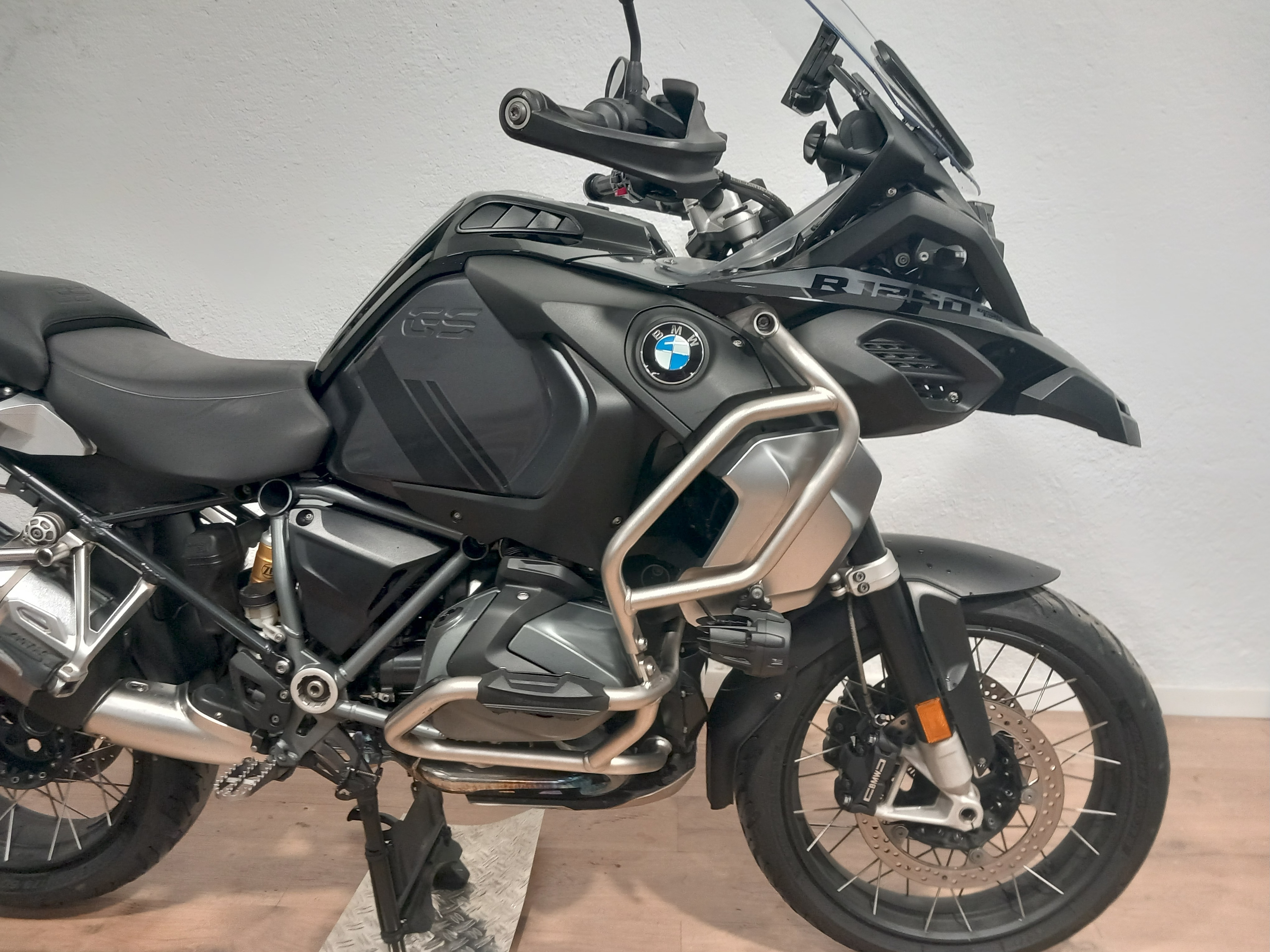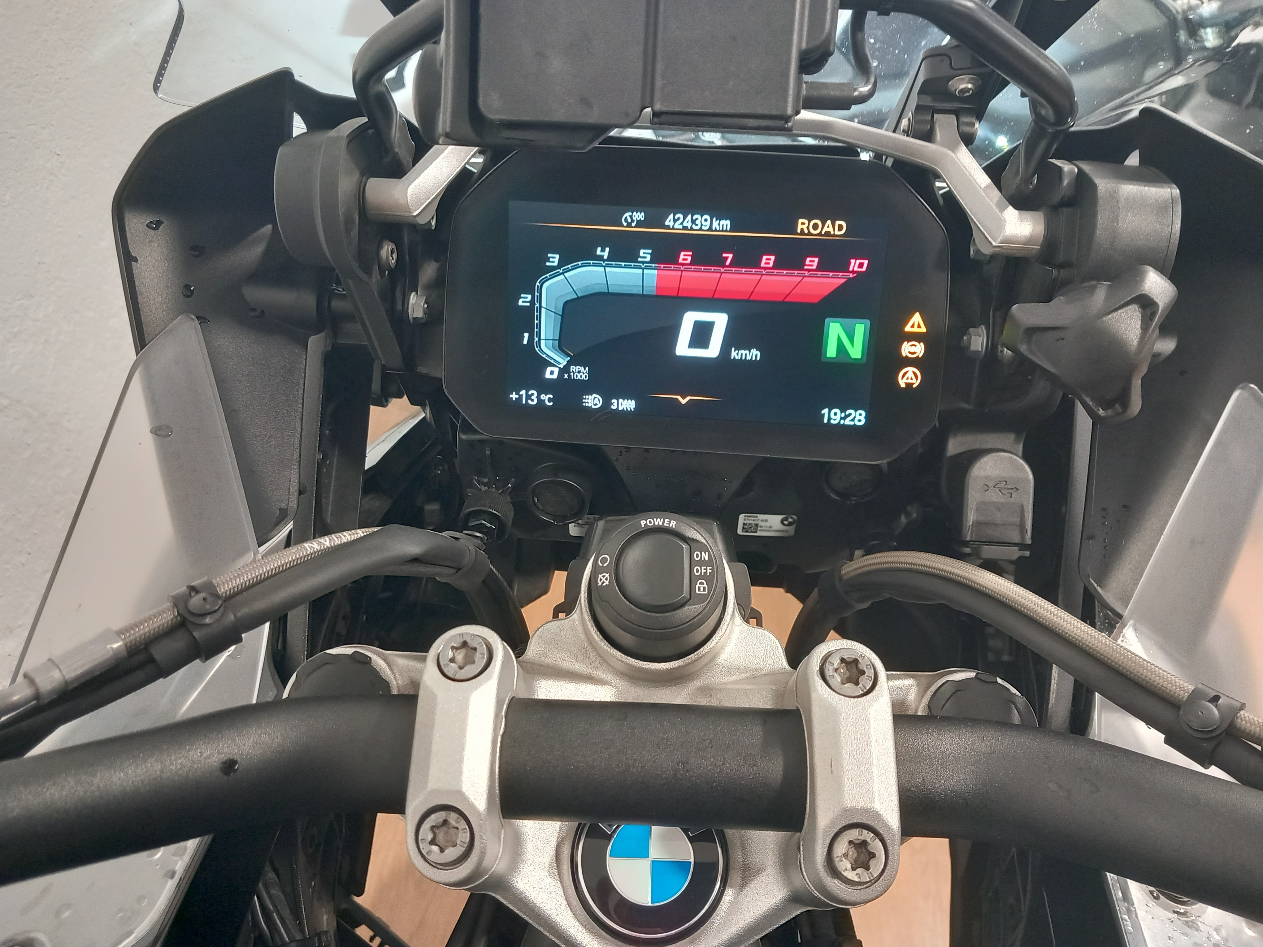 BMW R 1250 GS Adventure Triple Black en espectacular estado. Impresionante. Procedente de BMW, con todo el historial pasado y sellado. Neumático trasero a estrenar. Full equipe con los 4 paquetes de su año y en consecuencia absolutamente todos los extras: Paquete iluminación con LED adaptativo e intermitentes multi-función, botón SOS tele-services, puños calefactables, asientos calefactables independientes, suspensión ESA, arranque sin llave comfort, RDC sensores de presión de neumáticos, pantalla TFT, cambio quick shifter pro, ABS pro, modos de conducción PRO, control de crucero, pre-instalación de navegador, asistente de arranque en pendiente, basculante en negro, DTC, LEDS... Al ser Adventure, llantas multi-radio, defensas de motor, carenado y traseras, luces anti-niebla BMW homologadas, escape cromado y además las 3 maletas BMW originales de aluminio. El precio incluye documentación a nombre del comprador y garantía. ¡Pida cita previa para verificar su estado!