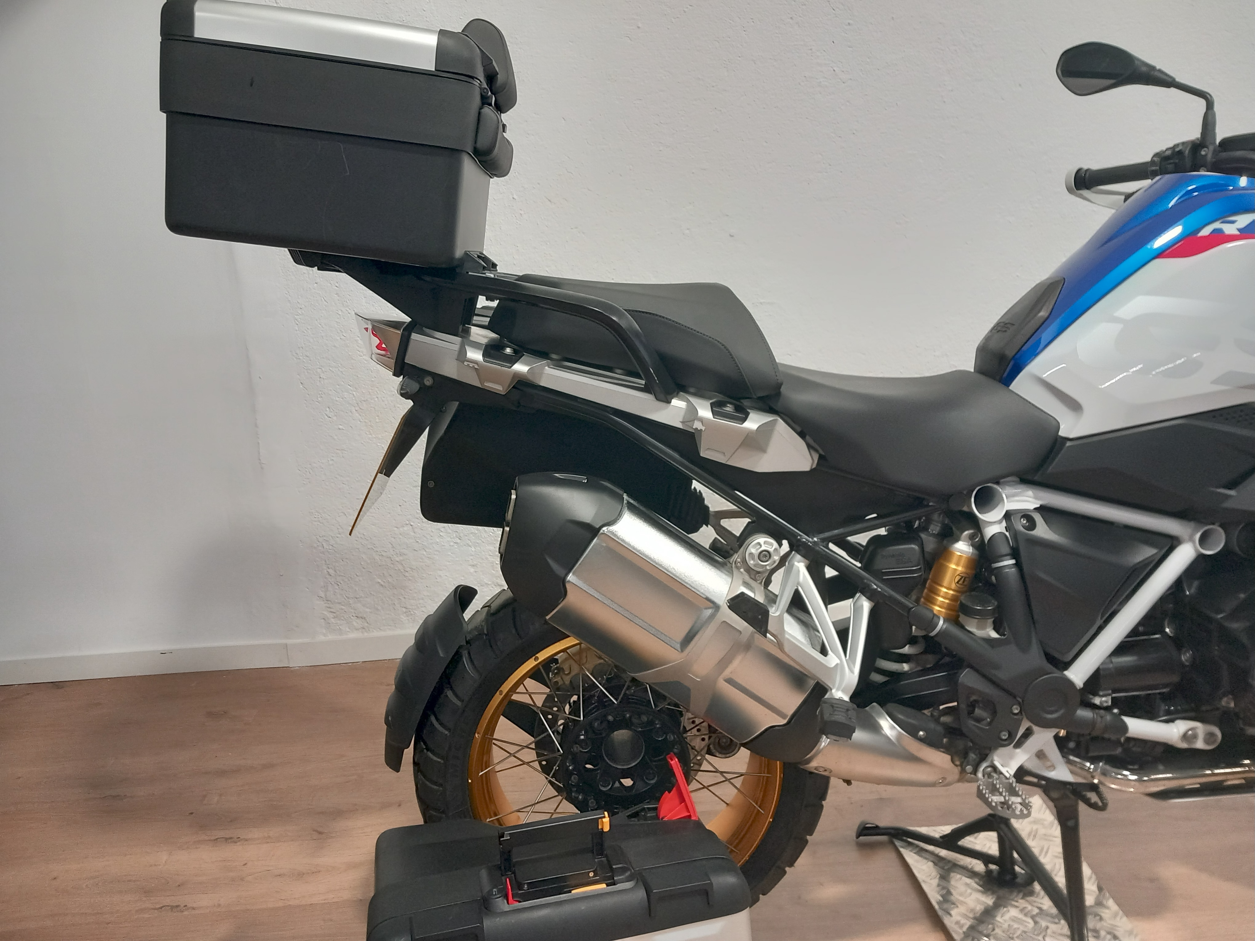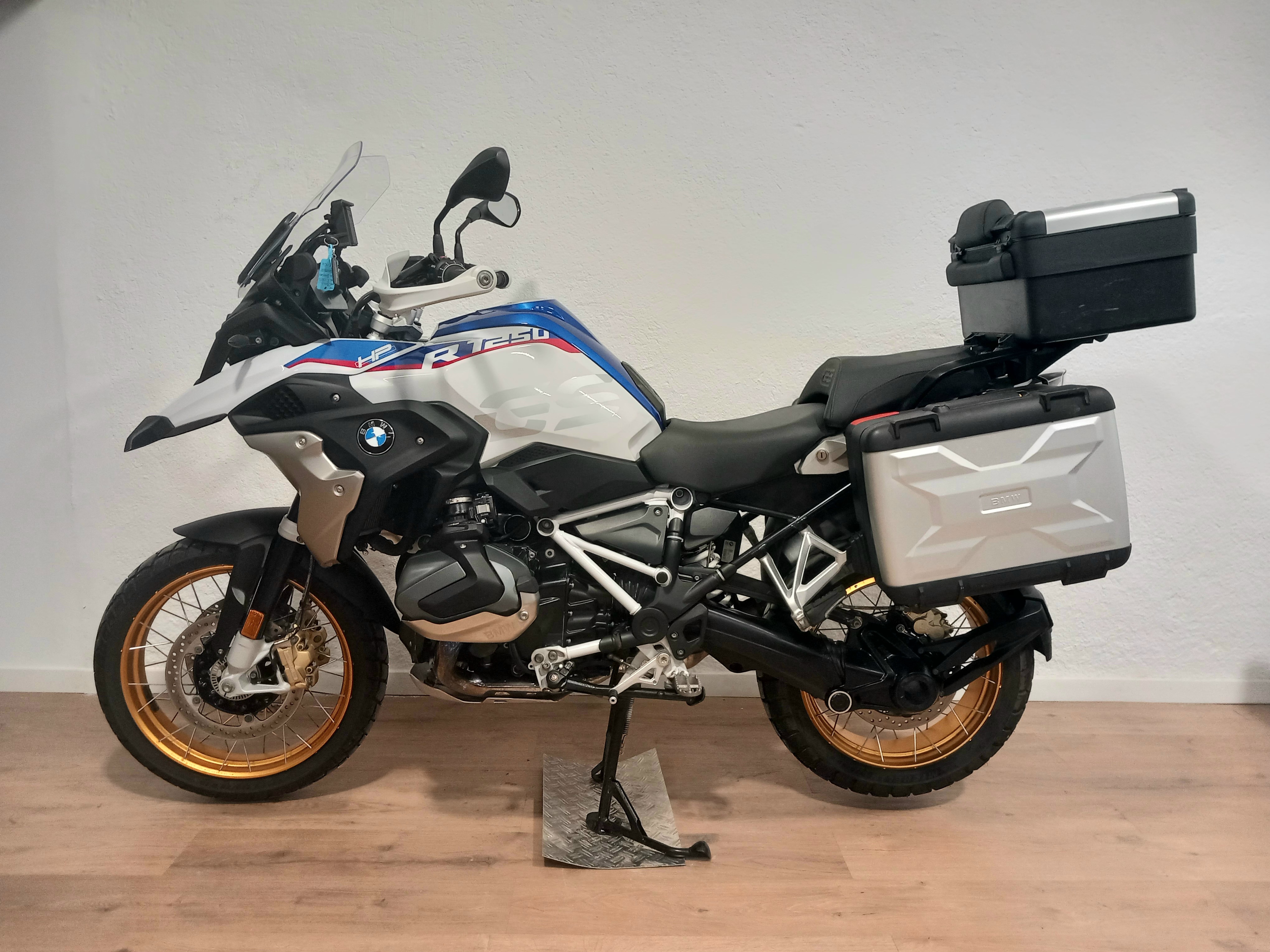 BMW R 1250 GS HP impecable, re-estreno total. Procedente de BMW, con todo el historial completo en BMW y a la que se la acaba de hacer el servicio hace dos semanas en BMW. Full equipe con los 3 paquetes de su año y en consecuencia todos los extras: suspensión electrónica ESA, arranque comfort sin llave, RDC sensores de presión de neumáticos, cambio quick shifter pro, ABS pro, modos de conducción PRO, control de crucero, puños calefactables, luces anti-niebla BMW homologadas, basculante en negro, DTC, LEDS + diurno, pre-instalación de navegador, asistente de arranque en pendiente, protectores de motor bóxer BMW, llantas multi-radio, escape cromado, y además juego de 3 maletas BMW Vario. El precio incluye documentación a nombre del comprador y garantía. ¡Pida cita previa para verificar su estado!