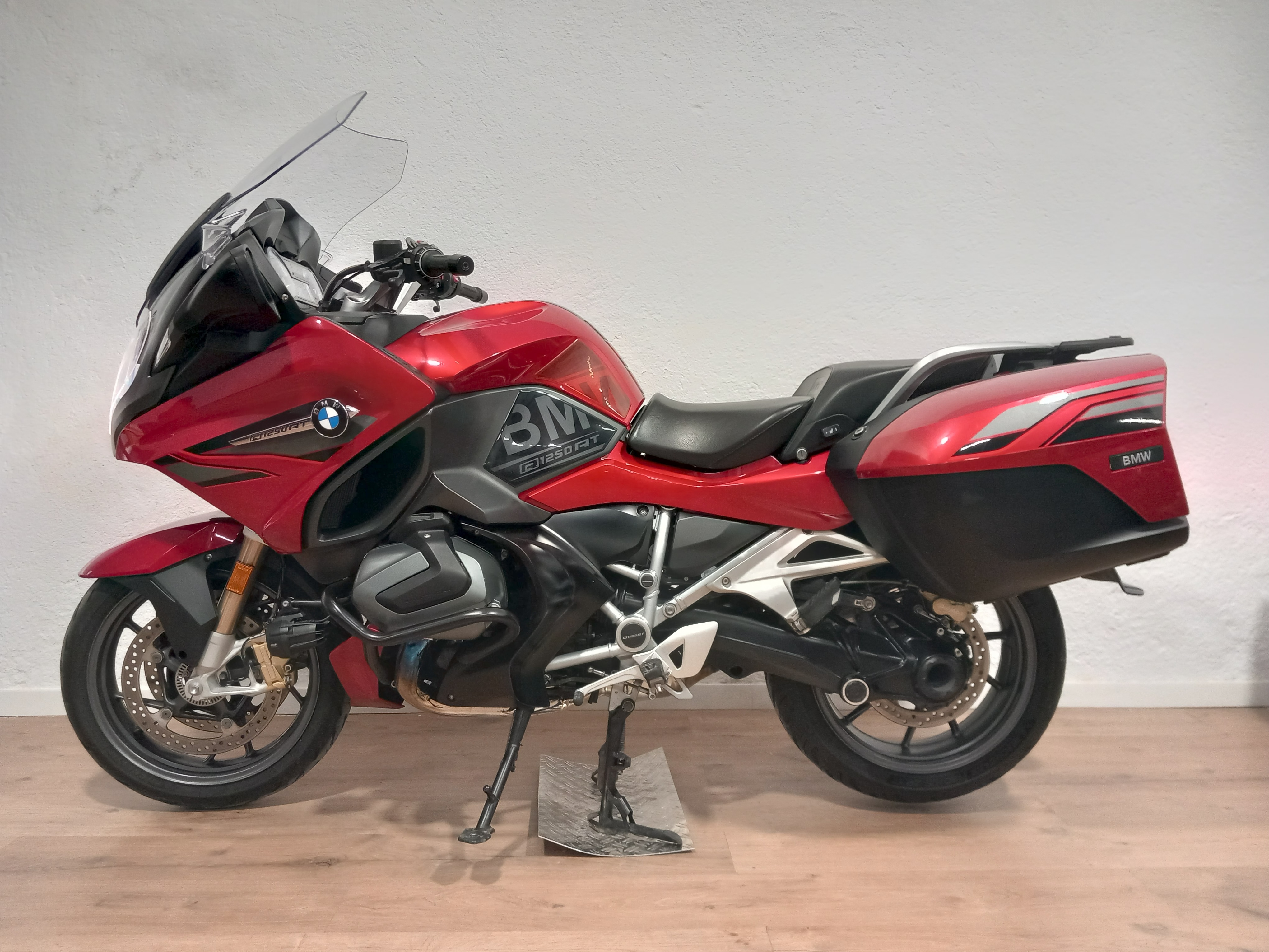 BMW R 1250 RT en estado de revista, absolutamente impecable. Procede directamente de BMW (como todas nuestras motos) y en consecuencia, con todas las revisiones pasadas y selladas en BMW. Recién revisada por servicio oficial BMW. Moto full equipe con los 2 paquetes existentes para RT (Comfort y Dynamic). Arranque sin llave comfort, ESA: suspensión electrónica regulable, pre-instalación de Navegador, Leds, 4 modos de conducción , puños calefactables, asientos calefactables independientes, RDC control de presión de neumáticos, DTC, quick-shifter pro, asistente de arranque en pendiente, mampara eléctrica, control de crucero, cierre centralizado, defensas de motor y luces anti-niebla BMW homologadas en ficha...todo. El precio incluye documentación a nombre del comprador y garantía en BMW. ¡Solicite cita previa para verificar su estado!
