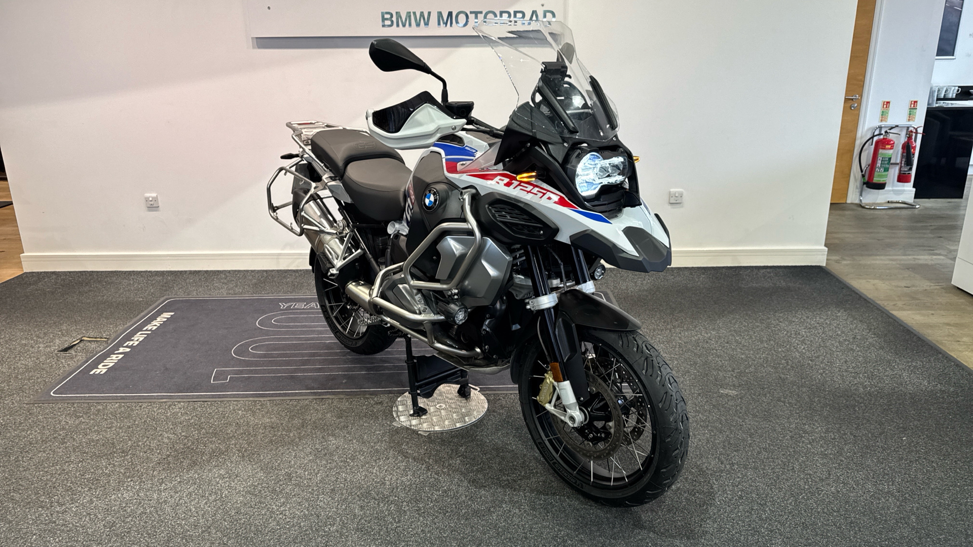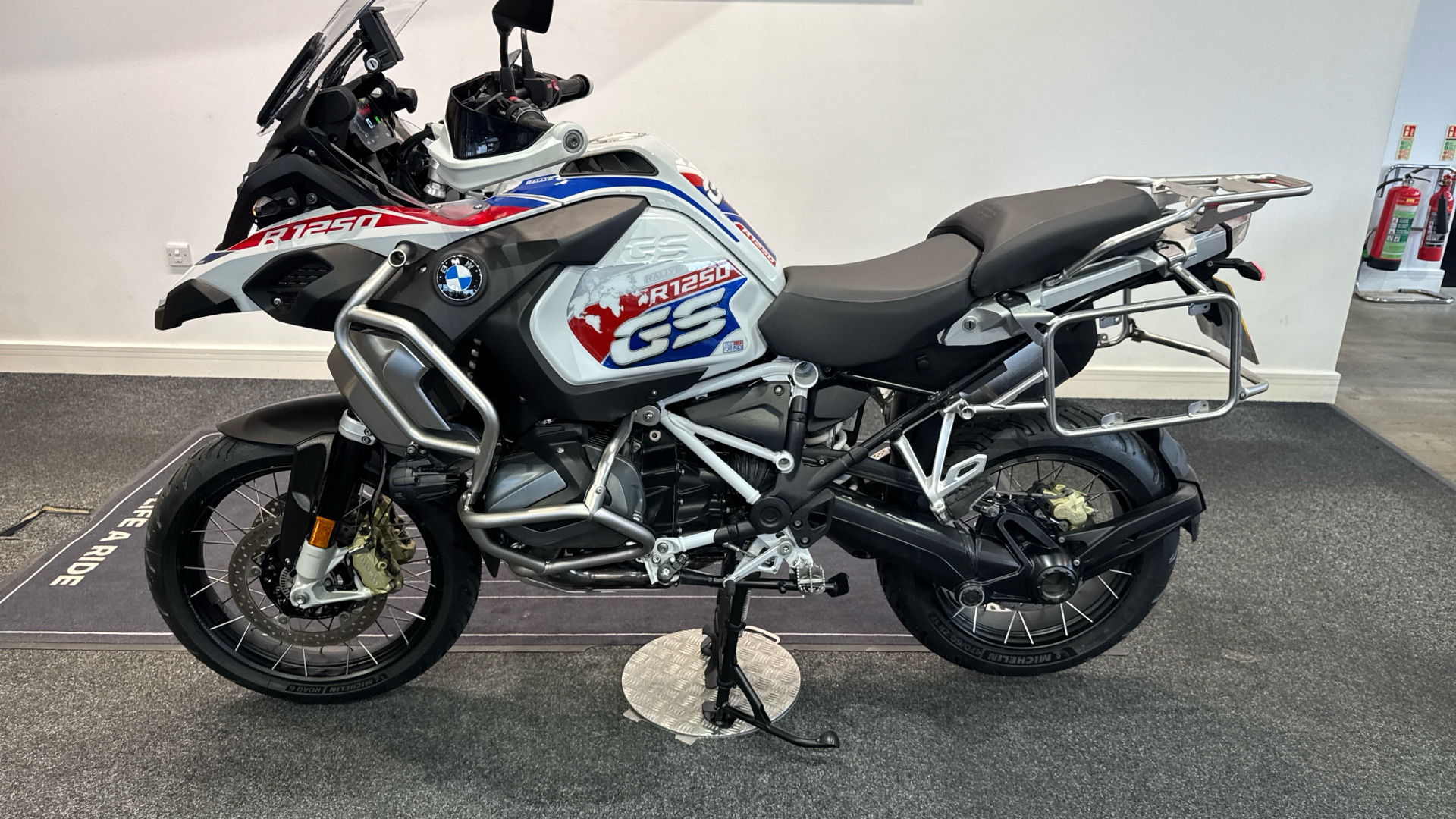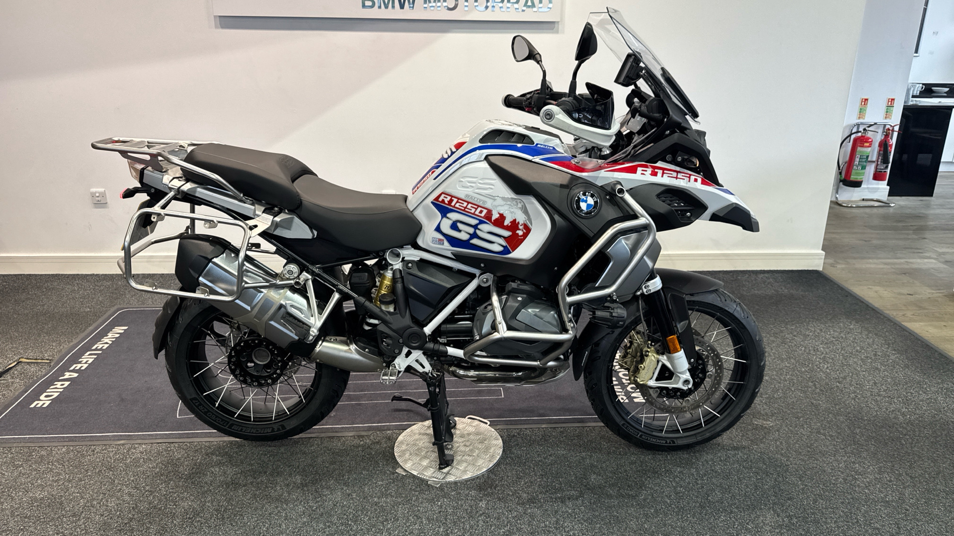 ¡Próxima llegada a exposición a mediados de Diciembre! BMW R 1250 GS Adventure Rallye inmaculada. Procedente de BMW, con todo el historial pasado, sellado y recién revisada en BMW. Ambos neumáticos a estrenar Full equipe con los 4 paquetes de su año y en consecuencia absolutamente todos los extras: Paquete iluminación con LED adaptativo e intermitentes multi-función, botón SOS tele-services, puños calefactables, asientos calefactados independientes, suspensión ESA, arranque sin llave comfort, RDC sensores de presión de neumáticos, pantalla TFT, cambio quick shifter pro, ABS pro, modos de conducción PRO, control de crucero, pre-instalación de navegador, asistente de arranque en pendiente, basculante en negro, DTC, LEDS... Al ser Adventure, llantas multi-radio, defensas de motor, carenado y traseras, luces anti-niebla BMW homologadas, escape cromado... Posibilidad de ponerle las 3 maletas originales BMW de aluminio. El precio incluye documentación a nombre del comprador y garantía. ¡Pida cita previa para verificar su estado!